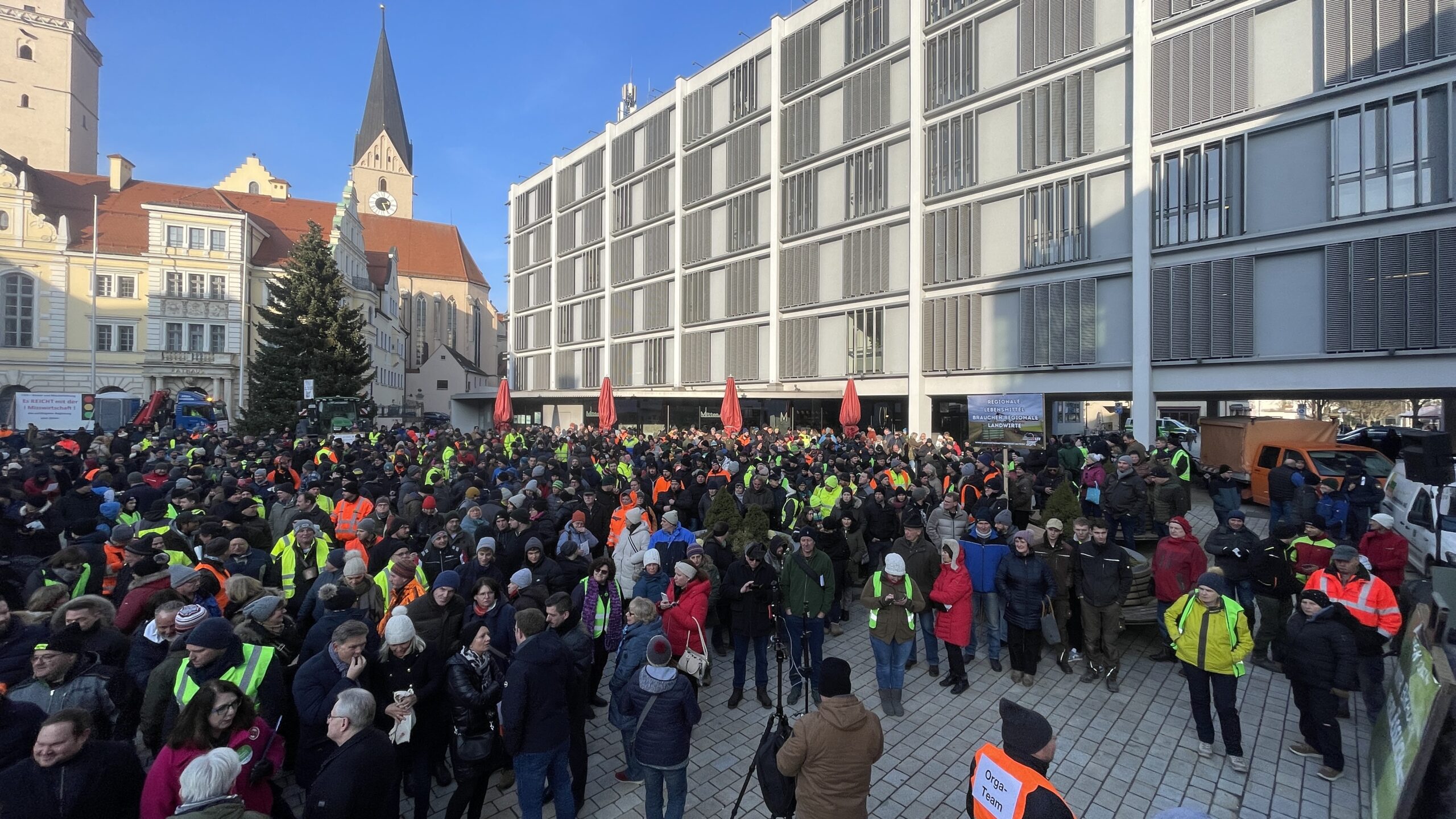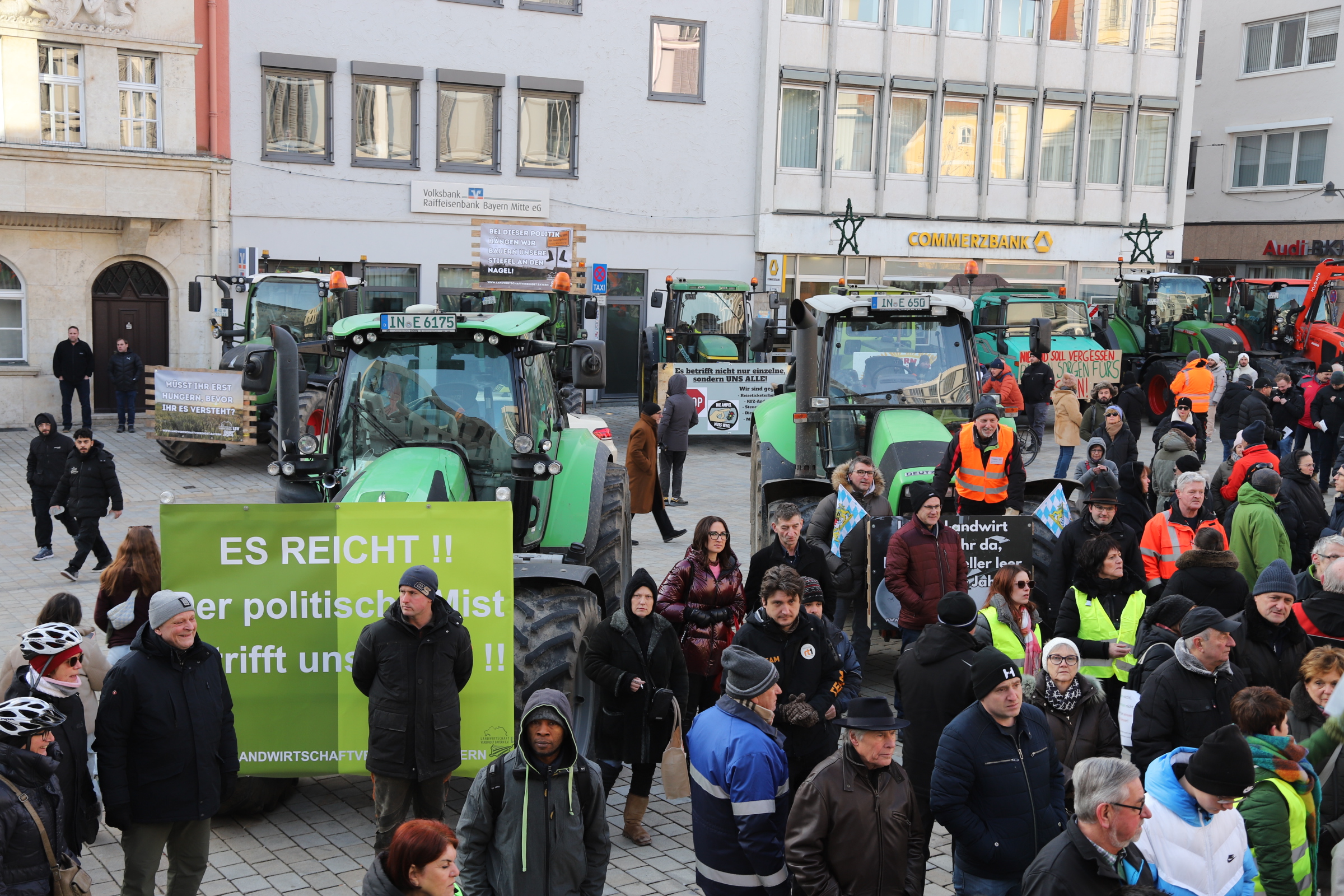 Schnell füllte sich heute (10.01.2024) der Rathausplatz in Ingolstadt zur Kundgebung der Landwirte. Darunter waren auch zahlreiche Ingolstädter Politiker die diese friedliche Kundgebung unterstützten.