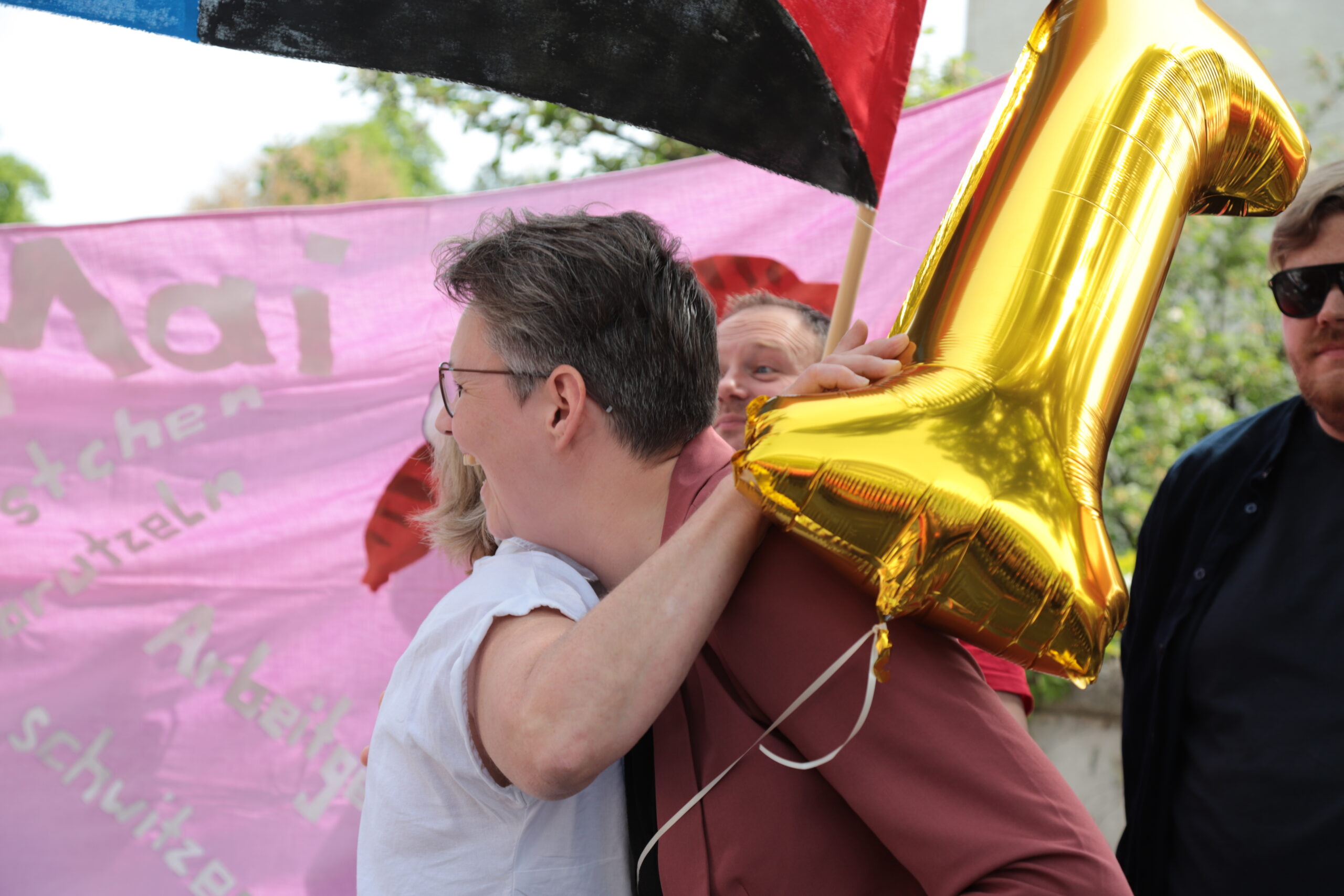 Bei bestem Maiwetter ging es heute zur Kundgebung mit Demozug zum Paradeplatz.