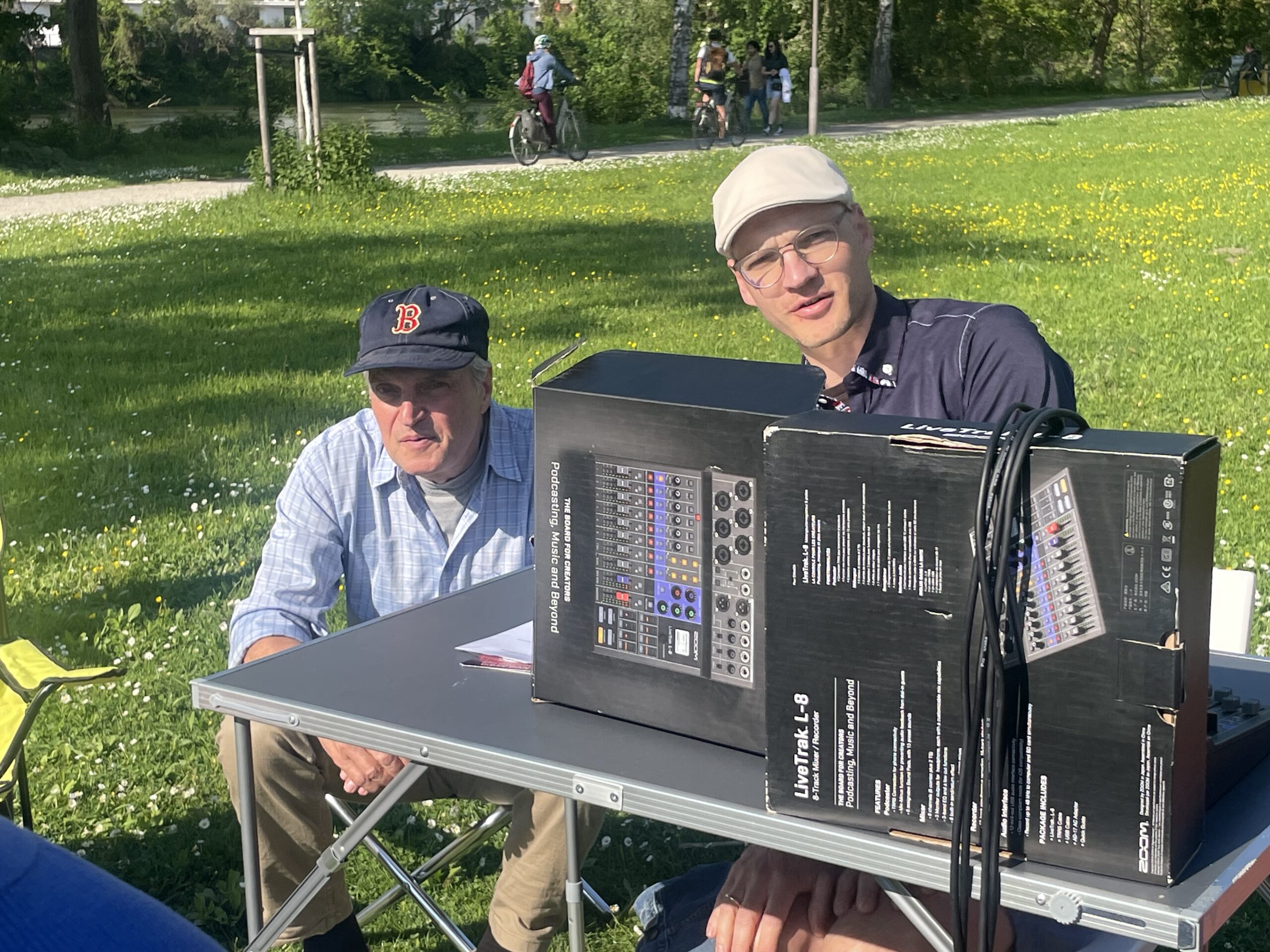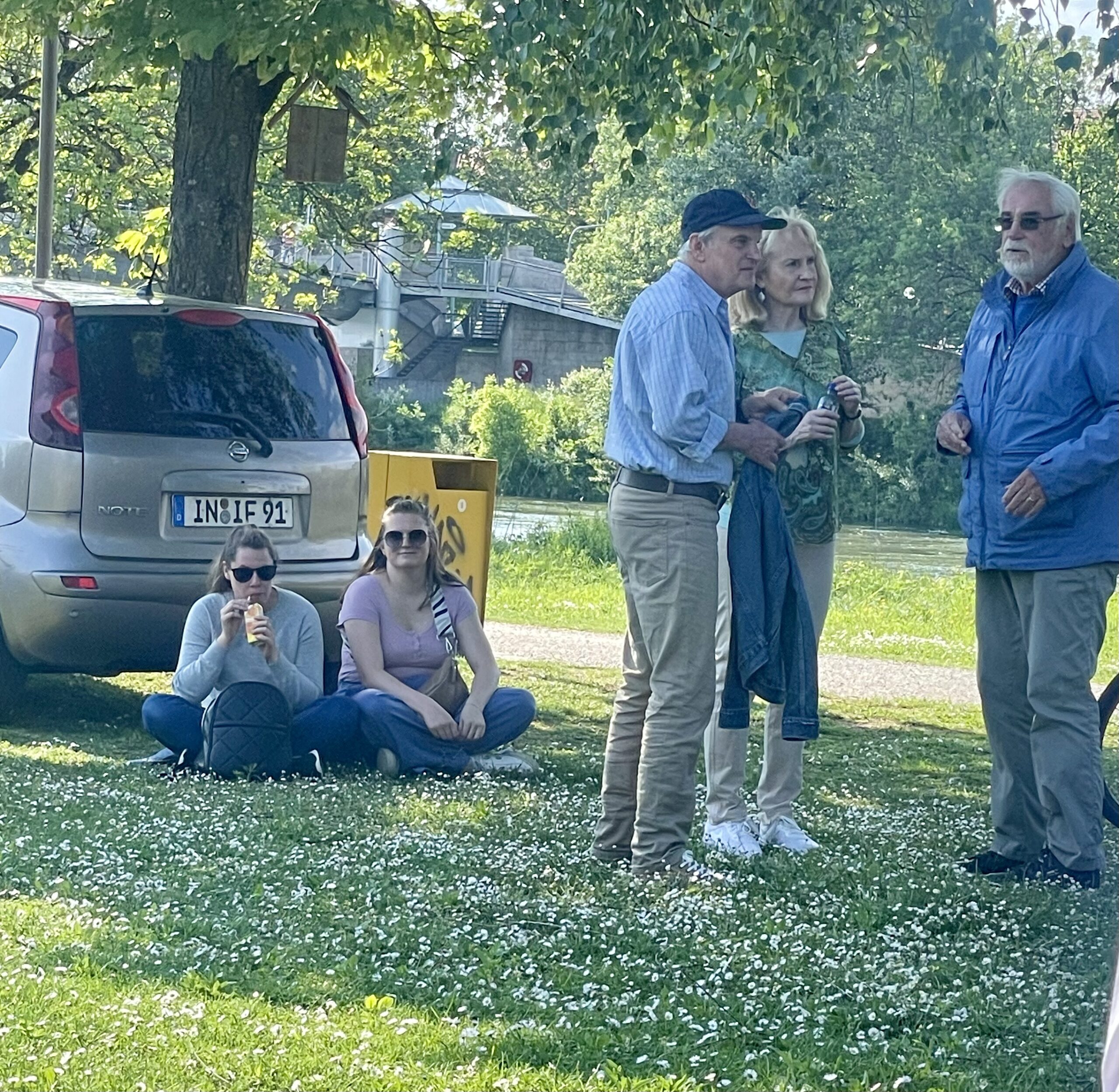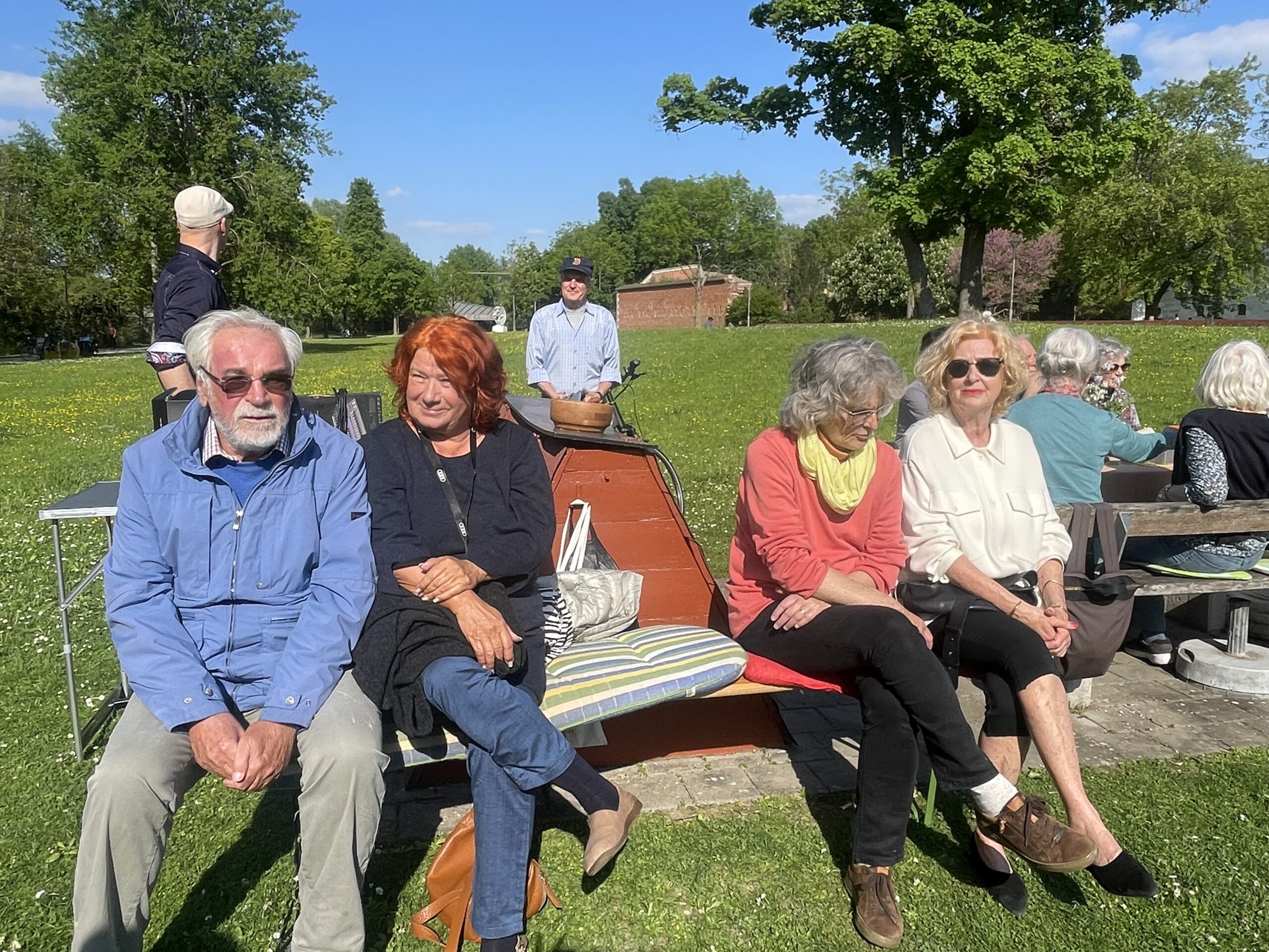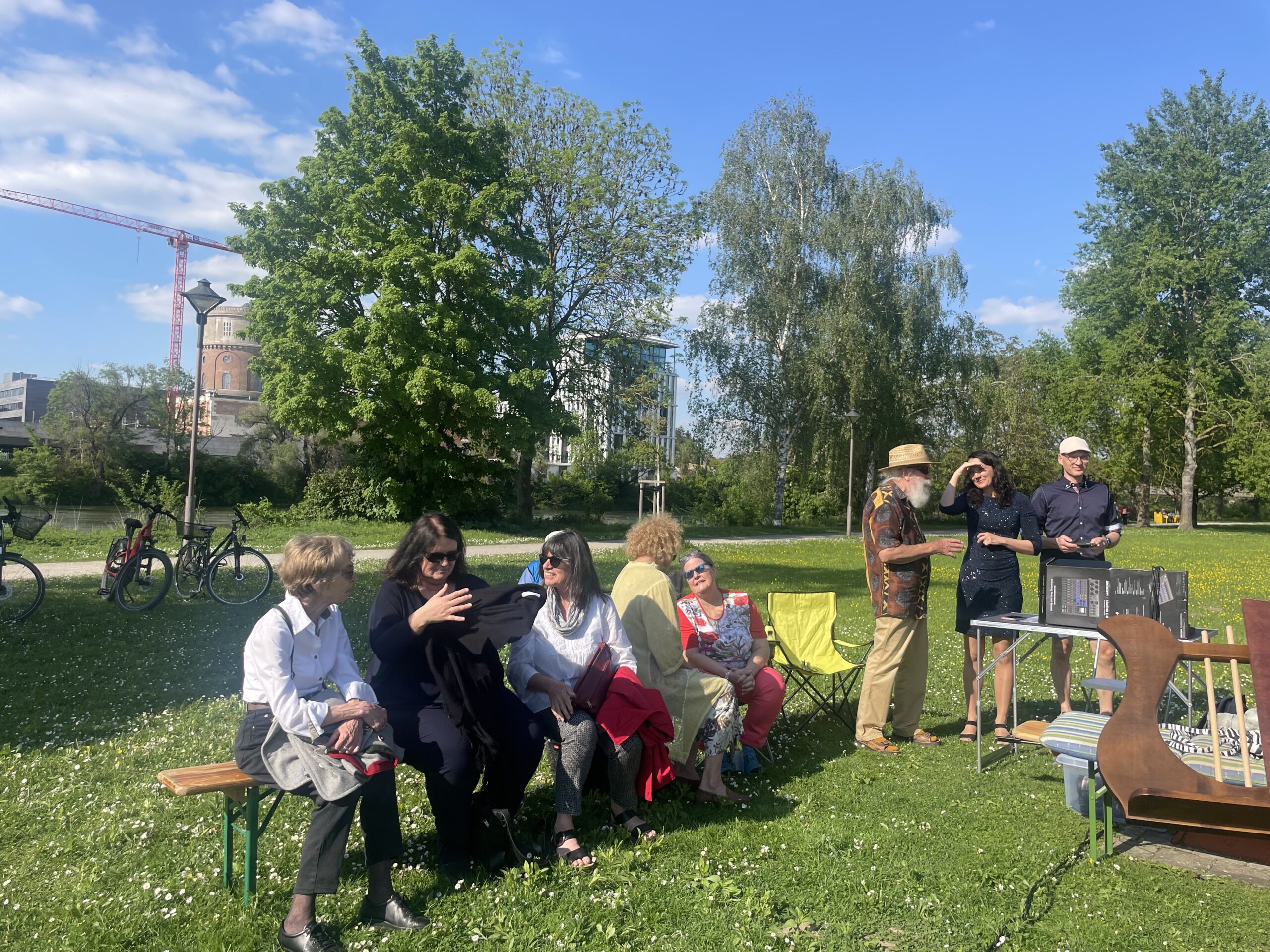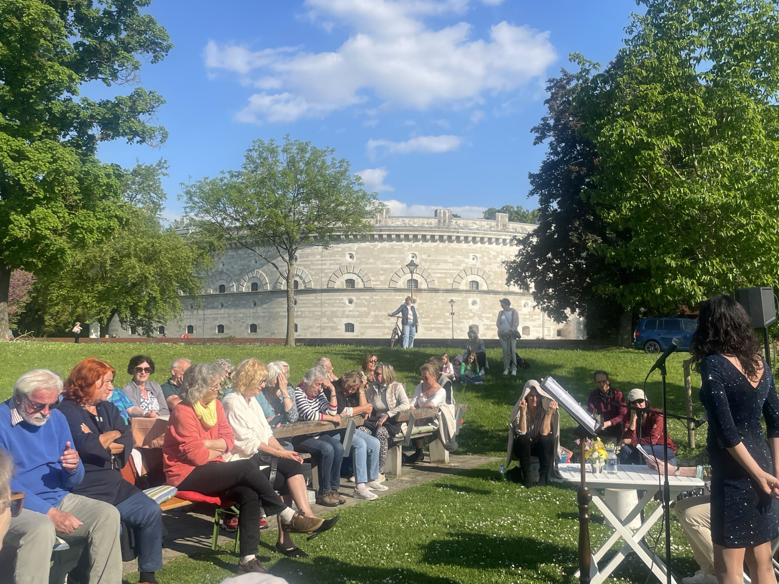 Cannonier las aus „Venusberg“, in dem Fleißer das aufregende Ereignis eines Theaterbesuch vor 100 Jahren beschreibt. Sie lässt die Zuhörer daran teilnehmen wie sie als junges Mädchen das Theater als Rausch erlebte, dem sie sich nicht entziehen konnte.Sie pumpte sich voll mit Theatergenuss, selbst wenn er fragwürdig war, und sie schlang alles herunter, ohne mit der Wimper zu zucken, denn es gab keinen Vergleich. Die Schilderungen der jungen Fleißer unterstrich Anna-Janina  durch eigens geschriebenen Songs, die die Auszüge aus dem „Venusberg“anschaulich unterstrichen. Die beeindruckende Inszenierung lockte immer mehr  zufällig vorbeigehende Spaziergänger an, so dass am Ende wohl gut 50 Teilnehmenden zu verzeichnen waren. Abschließend ließ  Cannonier  die Zuhörer an Fleißers Erinnerungen, die sie über ihre ersten Begegnungen mit Brecht verfasste, teilnehmen. Anna-Janina ergänzte diese mit Brechts bekannten Songs wie „Mecki Messer“ oder dem „Kanonensong“