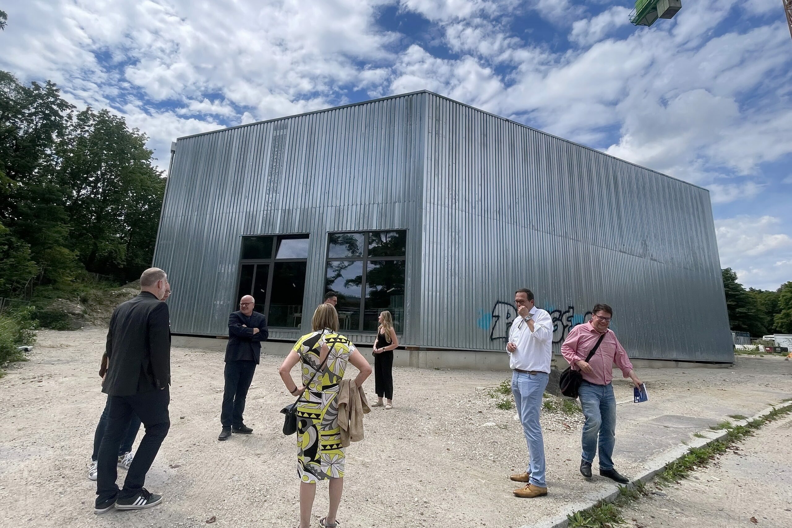 Ingolstadts Oberbürgermeister Dr. Christian Scharpf lud gemeinsam mit dem Kulturreferenten Marc Grandmontagne die Medien ein, sich ein Bild vom Baufortschritt des Holztheaters zu machen. Das Interesse war sehr groß, so dass zahlreiche Teilnehmende den Ausführungen der Vertreter der INKoBau zu den Baufortschritten interessiert folgten.