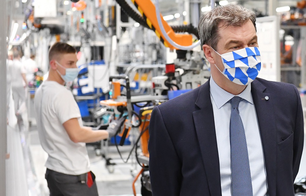 Bayerns Ministerpräsident Dr. Markus Söder hat sich am Montag im Audi-Werk Ingolstadt ein Bild vom Wiederanlauf der Audi-Produktion und den umfassenden Maßnahmen zum Gesundheitsschutz gemacht. Außerdem nutzte er den Besuch für ein persönliches Gespräch mit dem neuen Audi-Vorstandsvorsitzenden Markus Duesmann und tauschte sich mit ihm über die Auswirkungen der Corona-Pandemie auf die Automobilindustrie aus. Dazu teilt das Unternehmen weiter mit: Werkleiter Achim Heinfling führte den Ministerpräsidenten gemeinsam mit dem Gesamtbetriebsratsvorsitzenden Peter Mosch durch die Produktion. Seit heute fertigt Audi auf einer Linie den Audi A3 und Audi Q2 wieder im Dreischichtbetrieb, nachdem die Produktion zwei Wochen zuvor nach einer Corona-bedingten Produktionsruhe zunächst in einer Schicht gestartet war. Ab Ende Mai plant das Unternehmen, auch die Produktion des Audi A4 und Audi A5 schrittweise wiederaufzunehmen. Beim Hochfahren der Produktion steht dabei stets der Gesundheitsschutz der Mitarbeiter im Fokus. Beim Rundgang bekam Ministerpräsident Söder einen Überblick über die umfangreichen Maßnahmen, um die Abstands- und Hygieneregeln einzuhalten und Kontakte zu vermeiden.