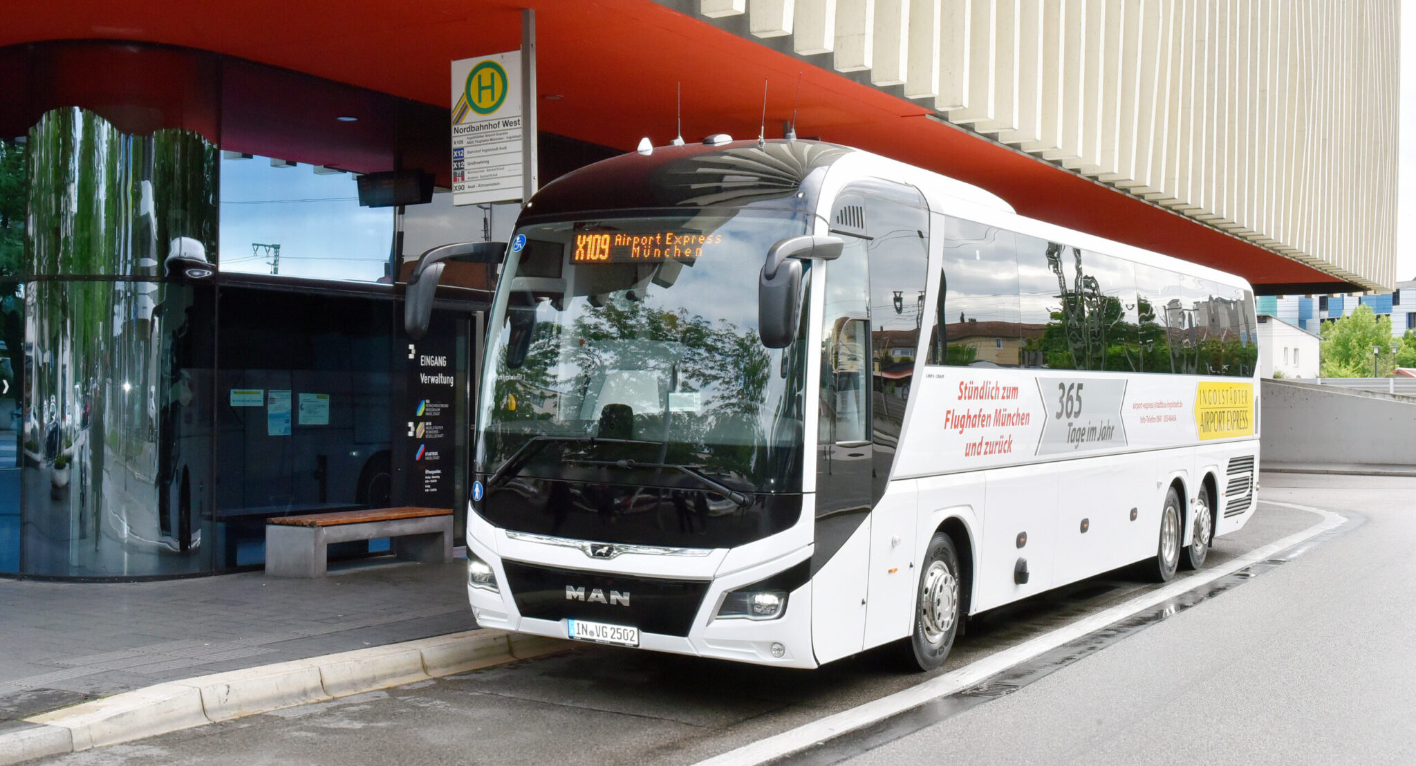 Im aktuellen Jahr 2025 wurden drei neue MAN-Busse in Dienst gestellt, die allesamt eine sehr gute Ausstattung aufweisen. Als Fahrgast im Airport-Express entfällt der Stress beim Parken am Flughafen. Dank der günstigen Parkmöglichkeit am Nordbahnhof und der dortigen Airport-Lounge beginnt der Komfort-Urlaub schon bei Reiseantritt in Ingolstadt. Weitere Haltestellen sind der ZOB auf Bussteig 21 und die Kurt-Huber-Straße. Bei vorheriger Anmeldung hält der Airport-Express auch an der Agip-Tankstelle an der Ausfahrt Langenbruck an der Autobahn A 9.