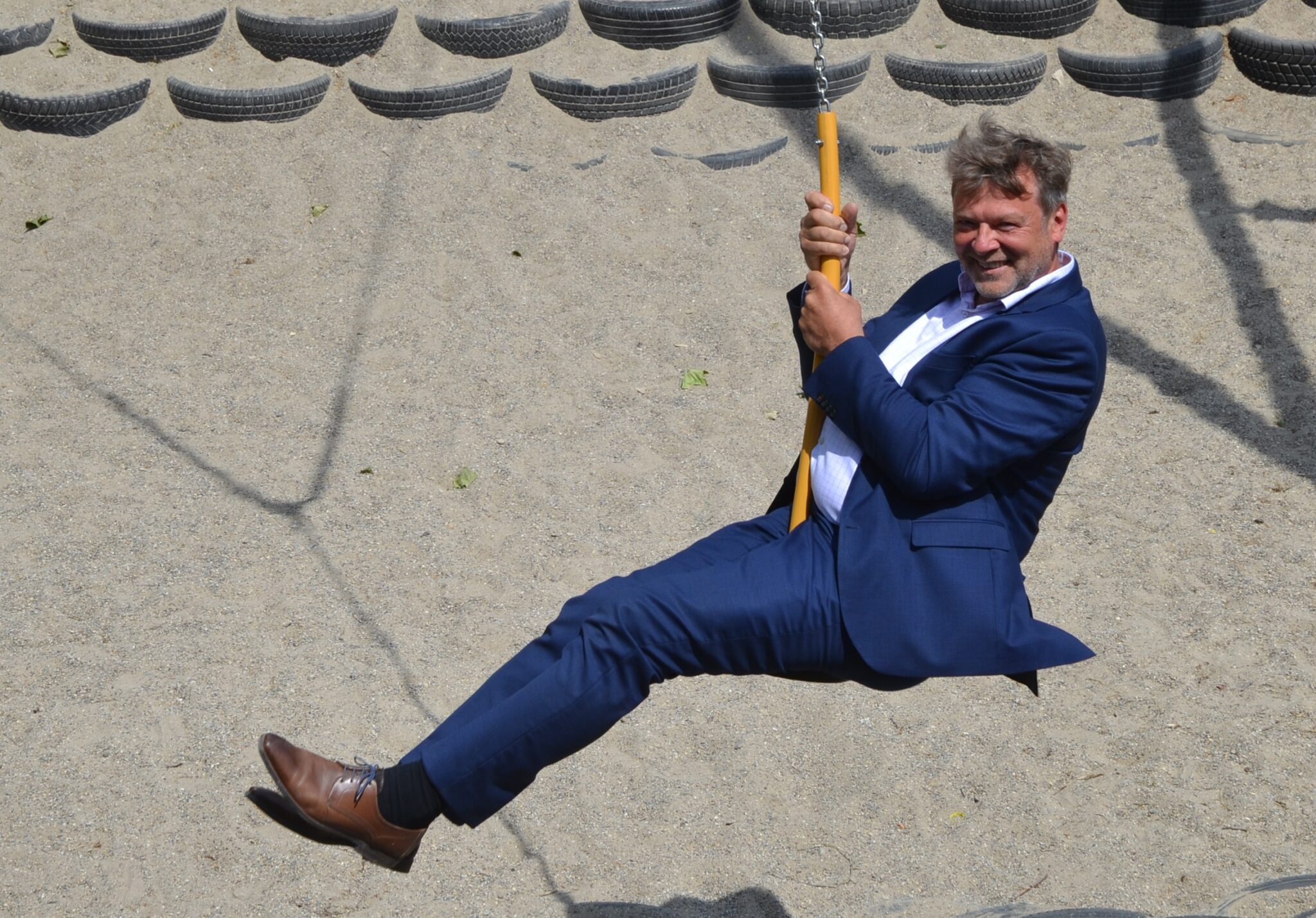 Und dass neben Oberbürgermeister Christian Scharpf und Gartenamtsleiter Ulrich Linder auch der Sparkassenchef vor Ort war, hatte einen guten Grund: Die Sparkasse Ingolstadt-Eichstätt hat den Neubau der Schaukel mit 25.000 Euro aus der Gewinnausschüttung der Sparkasse Ingolstadt-Eichstätt ermöglicht. „Inzwischen gibt es kaum einen Spielplatz in Ingolstadt, bei dem wir uns nicht engagiert haben,“ erklärte Jürgen Wittmann. Kein Wunder, bei so einem „beschwingten“ Vorstandsvorsitzenden…