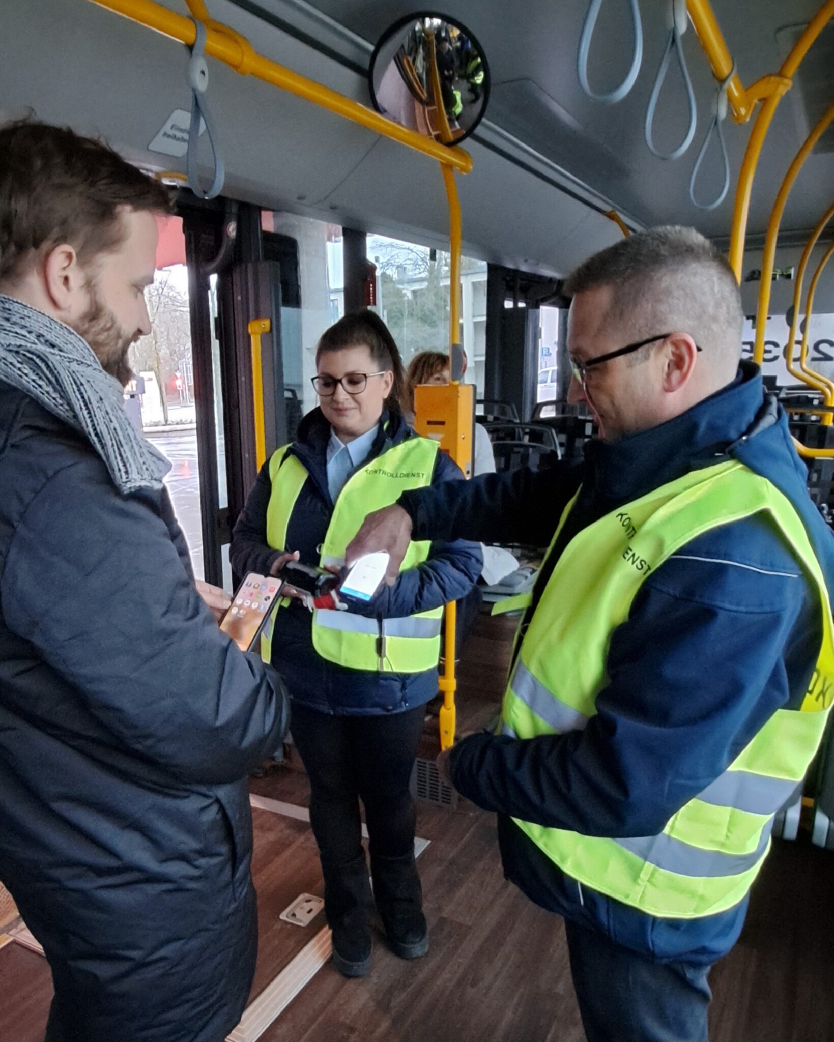 oder auch bei drohenden Verspätungen. Ebenfalls bei Fahrgästen mit Kinderwagen, Rollatoren oder Rollstühlen. Ein klar geregelter Fahrgastwechsel (Einstieg vorne und Ausstieg hinten) verbessert den Fahrgastfluss, verkürzt die Standzeiten an den Haltestellen und trägt somit zur besseren Pünktlichkeit bei. Darüber hinaus hilft die direkte Kontrolle im Bus, die Zahl unberechtigter Fahrten zu reduzieren.