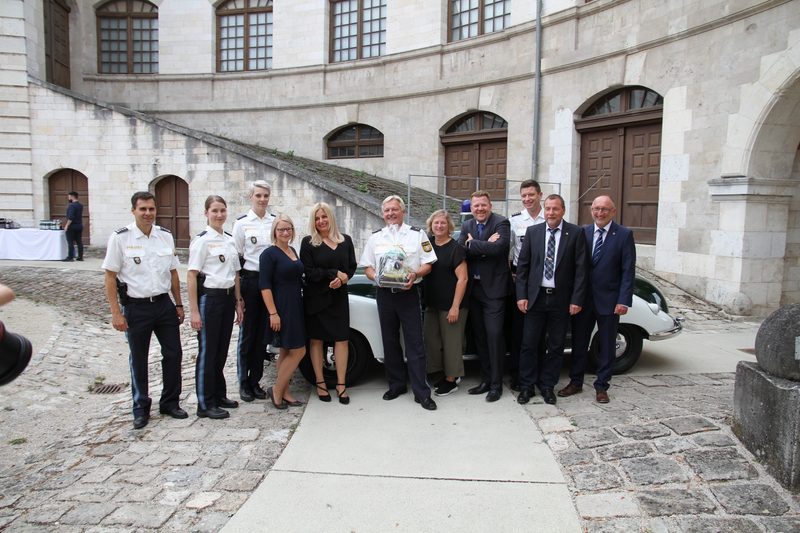 Glückwünsche und Geschenke gab es unter anderem auch von dem CSU Kreisvorsitzenden Alfred Grob, der in seiner Zeit als Leiter der Kriminalpolizei eng mit Kammerer zusammenarbeitete. Polizeipräsident Günther Gietl danke und würdigte die Arbeit von Hans-Peter Kammerer.