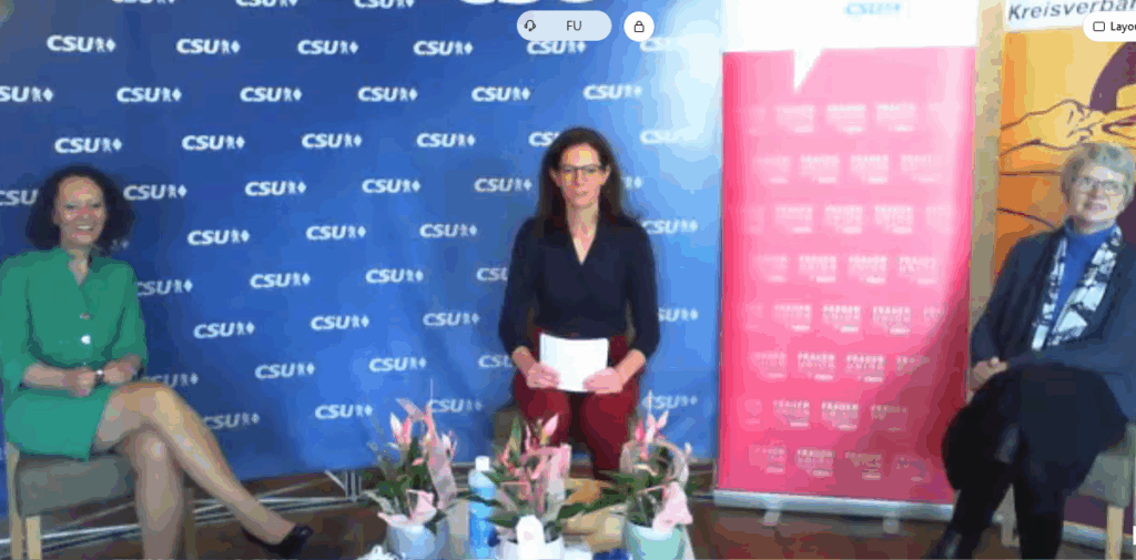 Eine „hybride Premiere“ war dieser 13. Frühstückdialog der Ingolstädter Frauen Union. Auf das (beliebte und äußerst schmackhafte) Frühstück musste aus bekannten Gründen verzichtet werden und