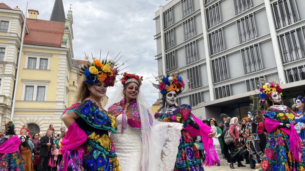 Tag der Toten in Ingolstadt – der Día de Muertos. Der farbenfrohe Umzug wird vom Asociación Latinoamericana en Ingolstadt e.V. organisiert. 2022 fand der erste