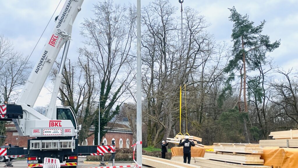 Heute kamen die ersten drei Schwertransporter aus St. Gallen mit den größten Teilen an. Und nun geht es Stück für Stück weiter. Ab 19. März