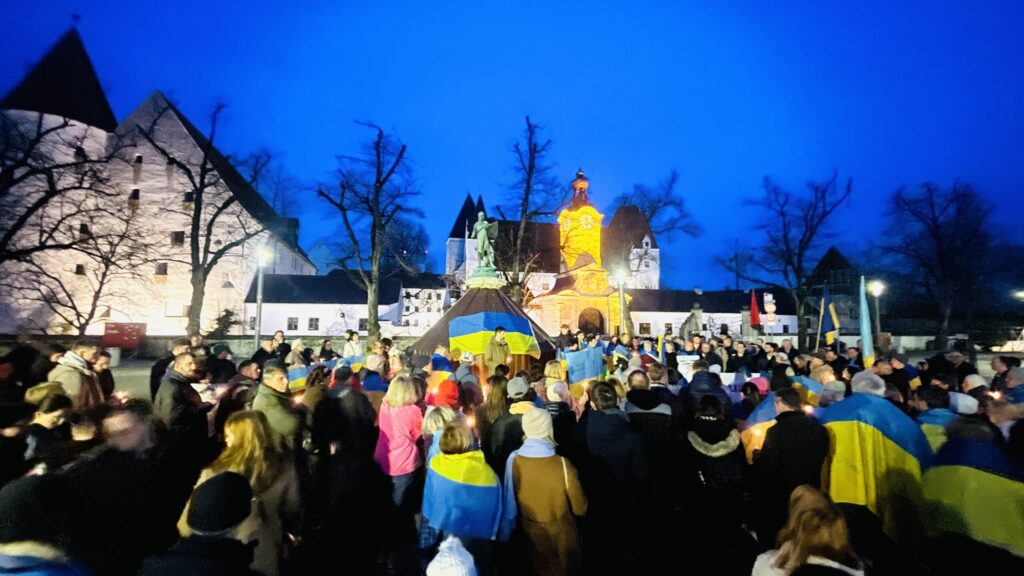 Zum zweiten Jahrestag des Krieges in der Ukraine versammelten sich heute viele Bürger, darunter auch Stadträte zur Mahnwache am Paradeplatz. Mit kurzen Reden der Organisatoren,