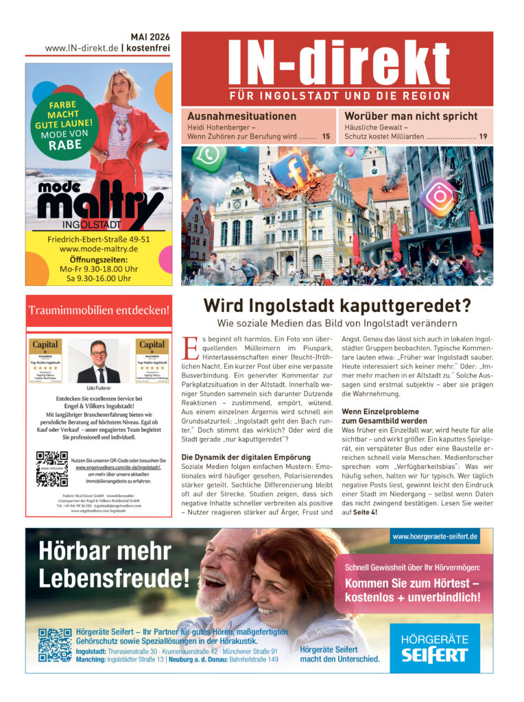 Die neue IN-direkt – Zeitung für Ingolstadt und die Region ist da! Wie immer verteilt als gedruckte Ausgabe an knapp 65.000 Haushalte in Ingolstadt