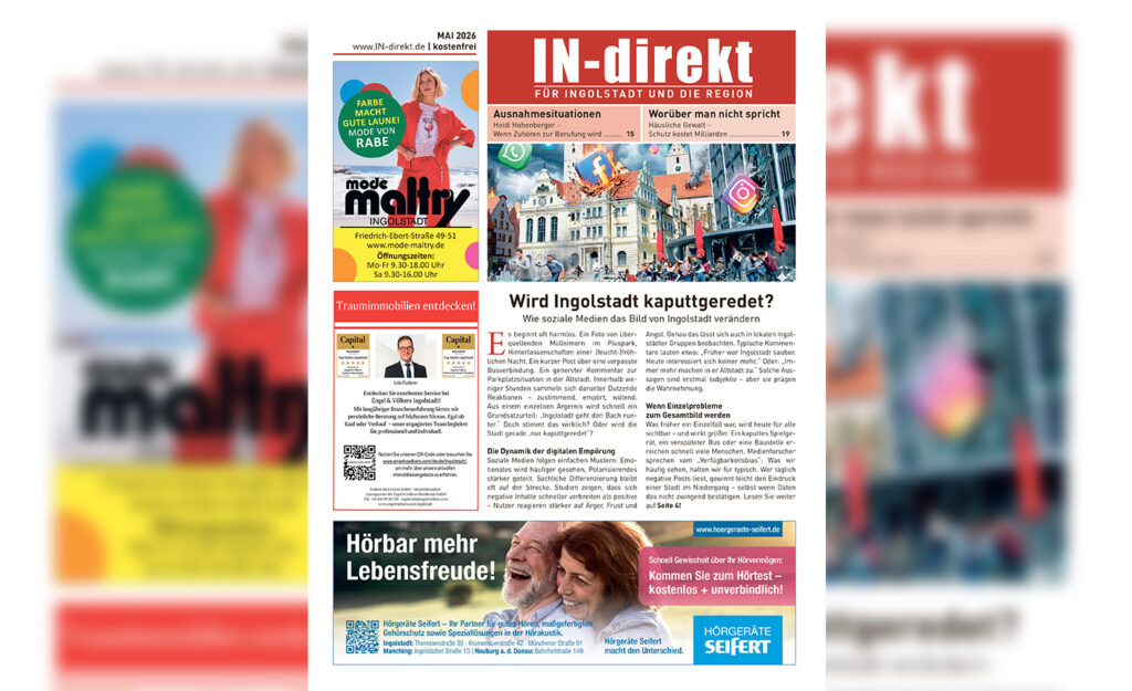 Die neue IN-direkt – Zeitung für Ingolstadt und die Region ist da! Wie immer verteilt als gedruckte Ausgabe an knapp 65.000 Haushalte in Ingolstadt oder schon jetzt hier online als blätterbares PDF nur einen Klick entfernt https://in-direkt.de/ausgaben/81066/printausgabe-in-direkt-2026-april/