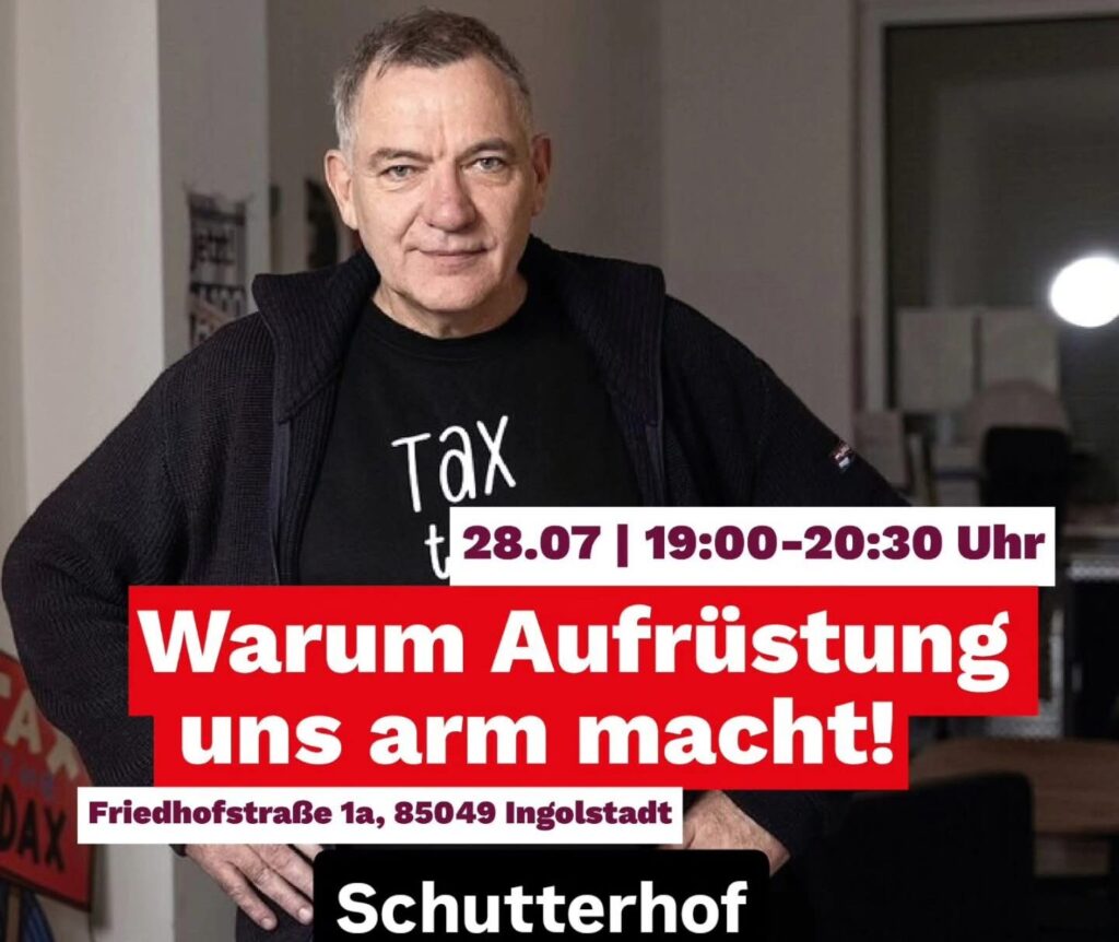 Warum Aufrüstung uns arm macht – unter diesem Titel spricht heute Jan van Aken im Schutterhof (Friedhofstraße 1a). Beginn ist um 19 Uhr, Ende gegen 20.30 Uhr. Pressestelle/Die Linke