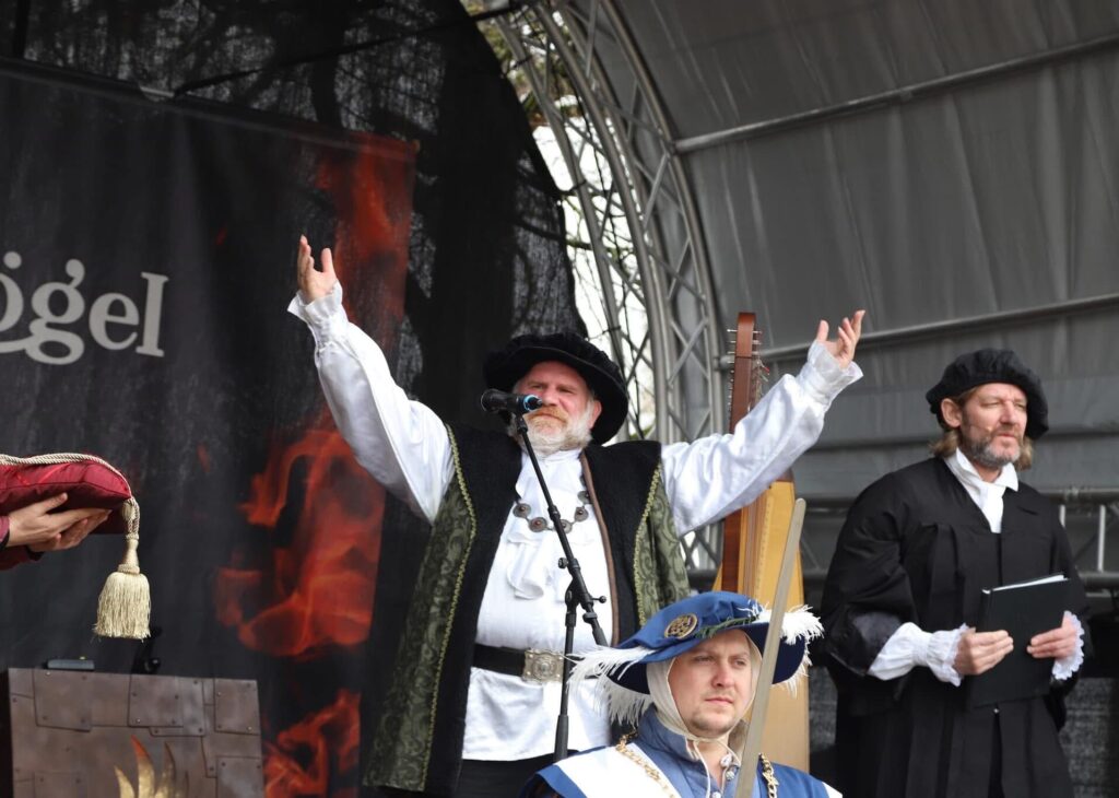 Heute um 15:16 Uhr wird’s offiziell: Die Verkündung des Reinheitsgebots steht an – ganz traditionell, aber mit Spaß und Stimmung!Kommt vorbei, schnappt euch ein frisches Bier und erlebt den Moment, der seit 1516 alles bestimmt: Was ins Bier darf – und was nicht. Foto: Archiv IN-direkt/Hartmann