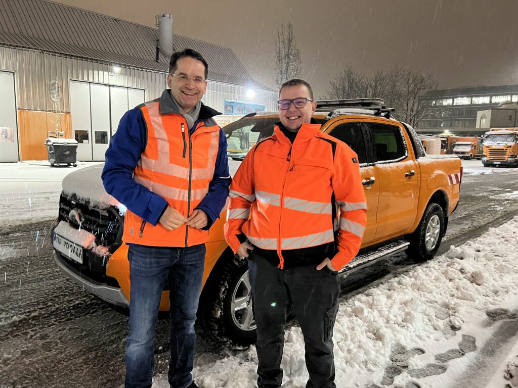 Nächtlicher Winterdienst im Volleinsatz – Oberbürgermeister vor Ort