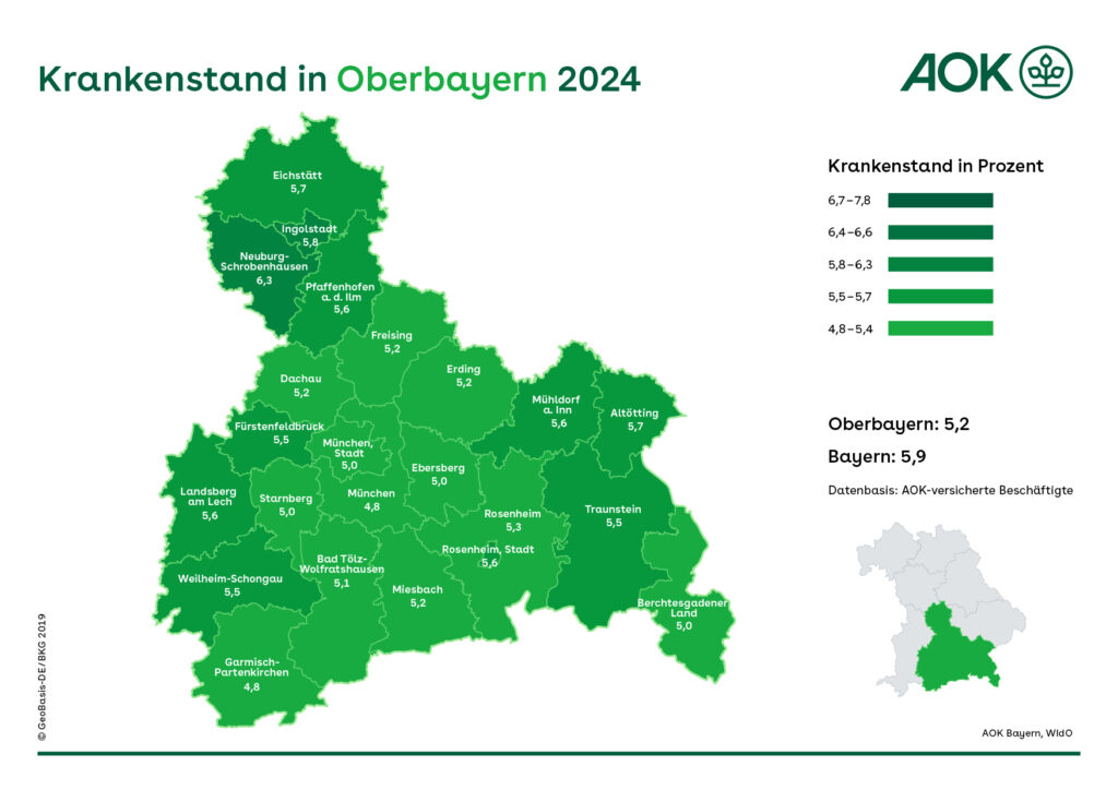 Im Jahr 2024 haben sich in Ingolstadt etwas mehr AOK-versicherte Beschäftigte krankgemeldet als 2023. Das zeigt eine aktuelle Auswertung der AOK Bayern. Im Vergleich zum Vorjahr kletterte der Krankenstand in Ingolstadt um 0,1 Prozentpunkte auf 5,8 Prozent“, erläutert Ulrich Resch, Direktor von der AOK in Ingolstadt. Damit liegen die AOK-versicherten Berufstätigen in Ingolstadt über dem bayerischen […]