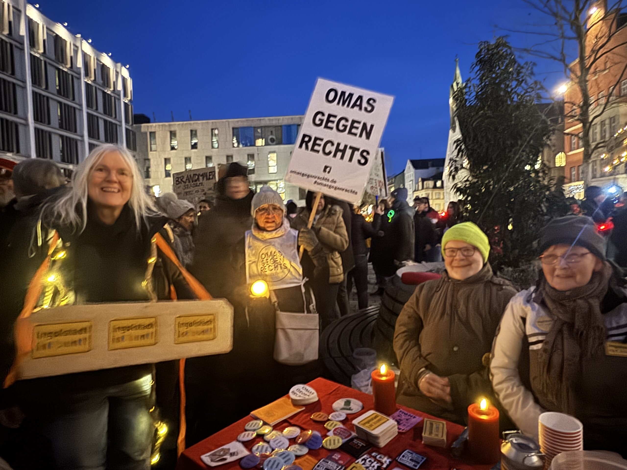 Auch Ingolstadt beteiligte sich an den bundesweiten Kundgebungen für Demokratie und gegen rechte Hetze. So folgten der von „Ingolstadt ist bunt“ organisierten Lichterkette, die unter dem Motto „Demokratie braucht Dich“ nach polizeilichen Angaben gut 500 Menschen. Der Aufruf wurde von zahlreichen Verbänden und Organisationen, die dem Plakat zu entnehmen sind, unterstützt. Der prominenteste Redner war bei der Kundgebung, die am 7. Februar um 18.00 Uhr am Rathausplatz stattgefunden hatte, der bekannte Stadionsprecher Italo Mele: „Auf dem Platz ist es egal woher Du kommst. Genauso sollte es auch in der Gesellschaft sein“. Zum Abschluss der Kundgebung spielte die Band „Schutterhexen“ der „Omas gegen Rechts“ und die Menschen formierten rund um Rathaus eine lange Lichterkette. (HaGa)