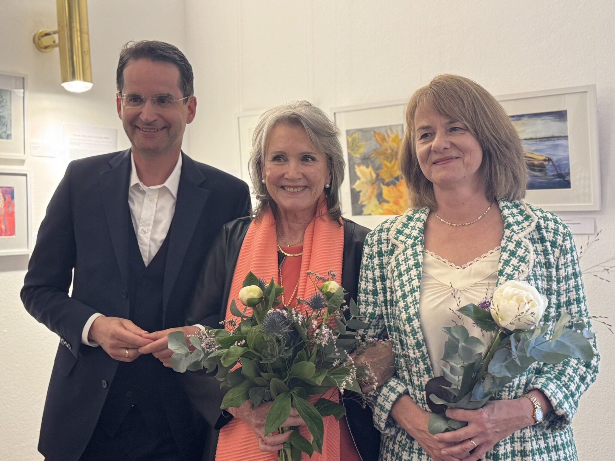 Es ist schon etwas Besonderes, dass die international bekannte Künstlerin Kathy Kornprobst seit nun mehr 40 Jahren an der VHS Kunstkurse gibt. Ein guter Anlass dieses Jubiläum mit einer Auswahl der Kunst ihrer Schülerinnen zu zeigen. Der Oberbürgermeister Dr. Michael Kern eröffnete die Vernissage und würdigte nicht nur die umtriebige Künstlerin, sondern hob auch ihr großes soziale Engagement, denn sie engagiert sich auch seit Jahren im Kunstzentrum Besondere Menschen.