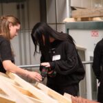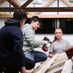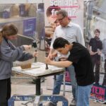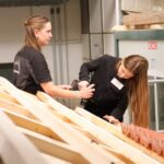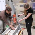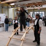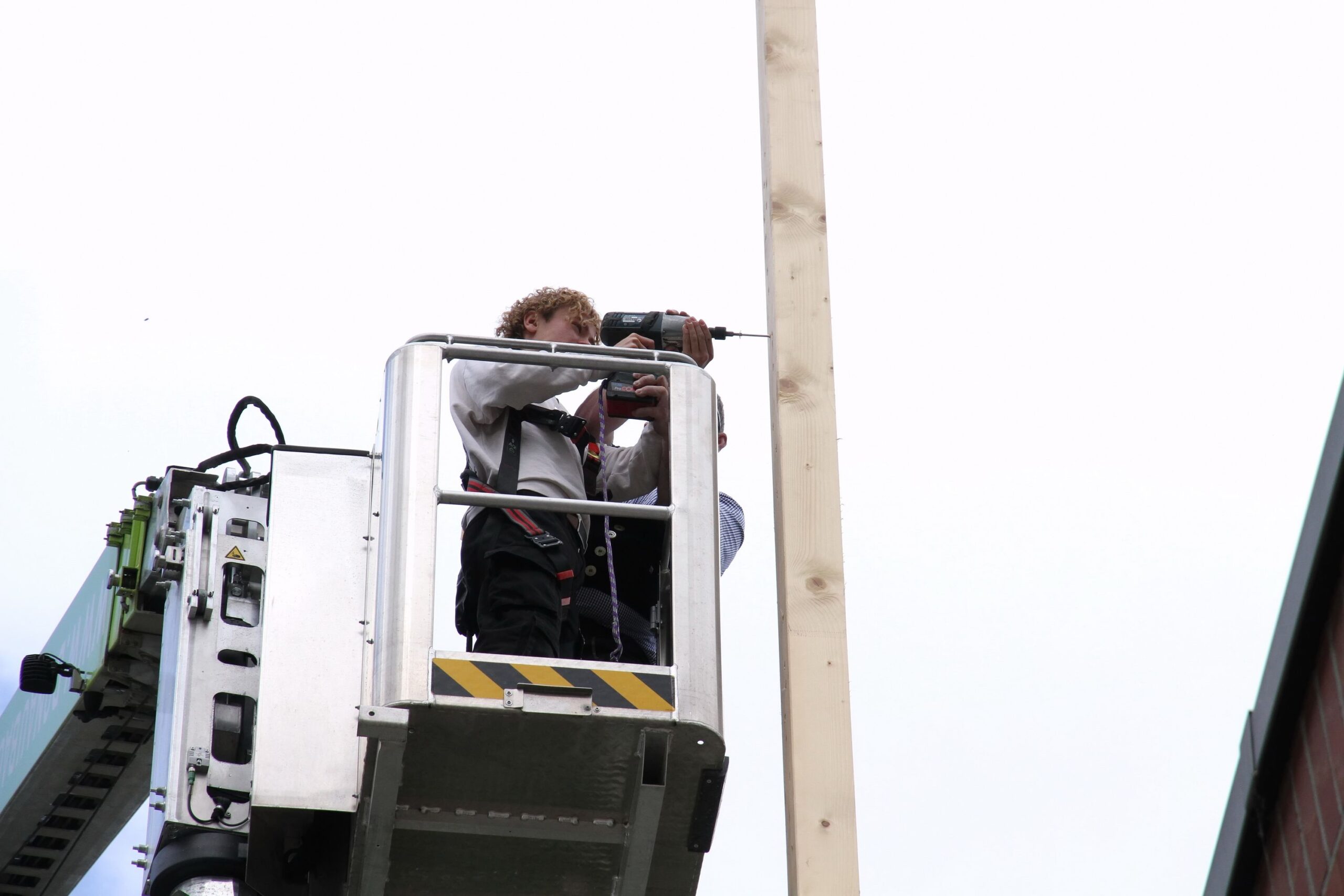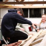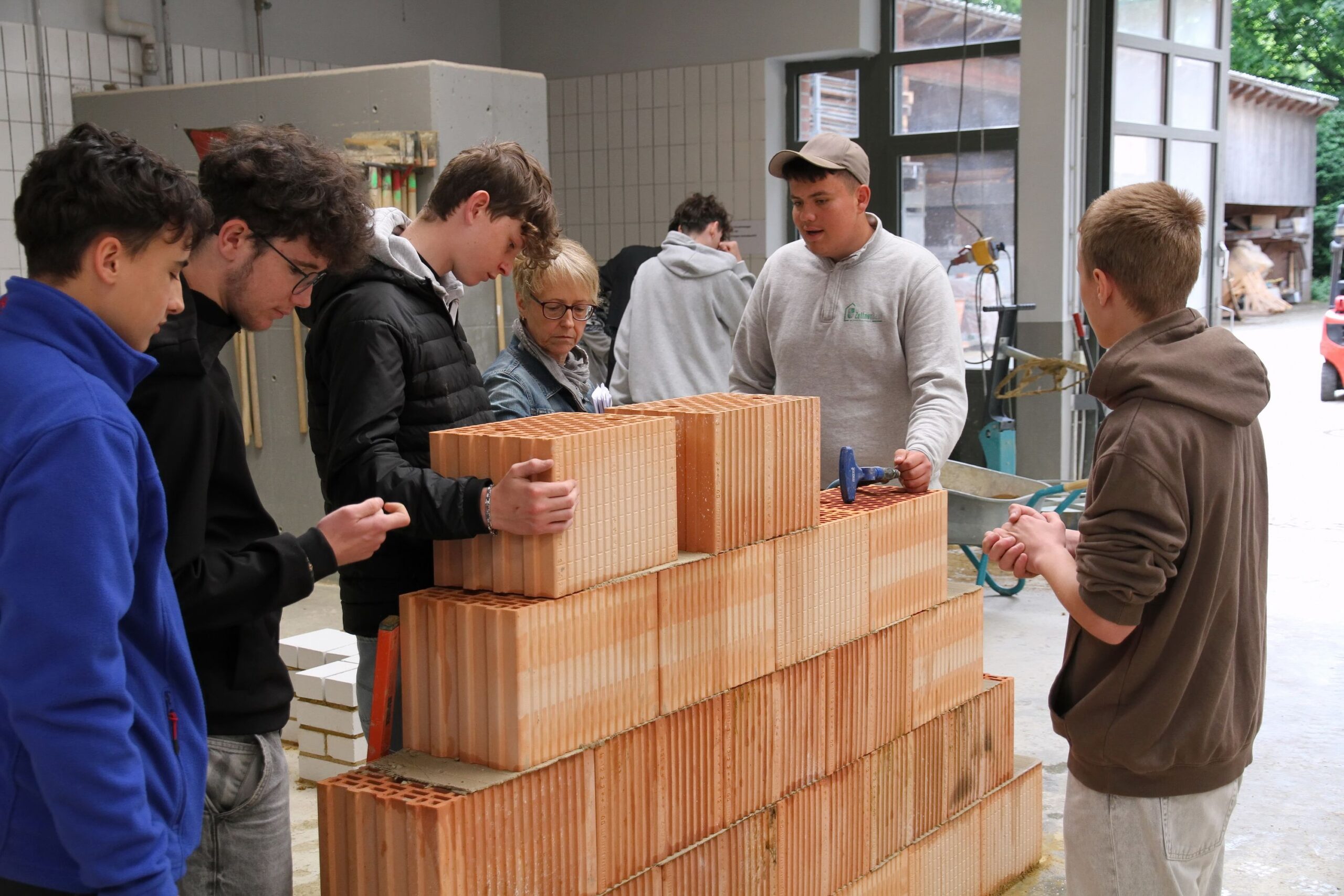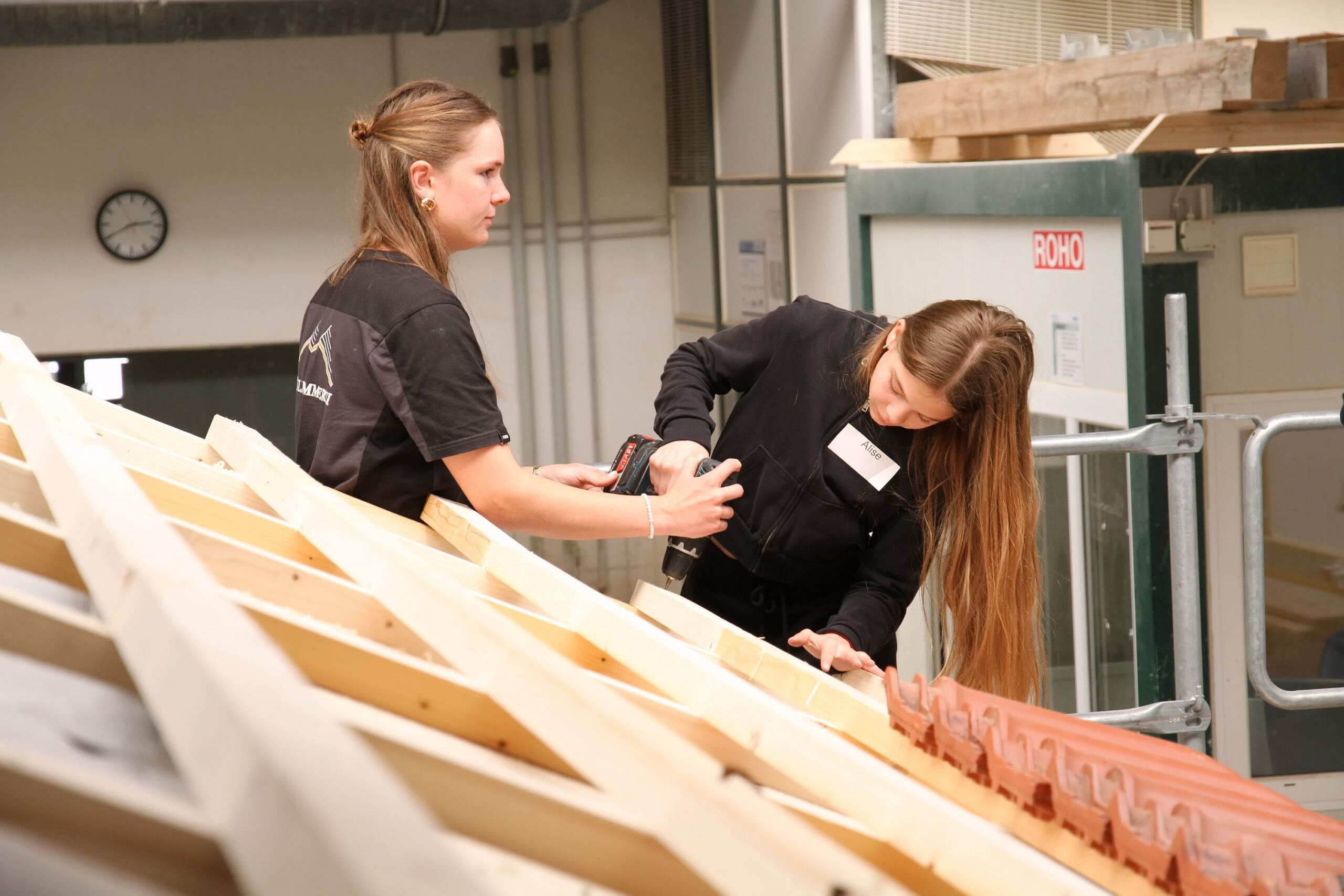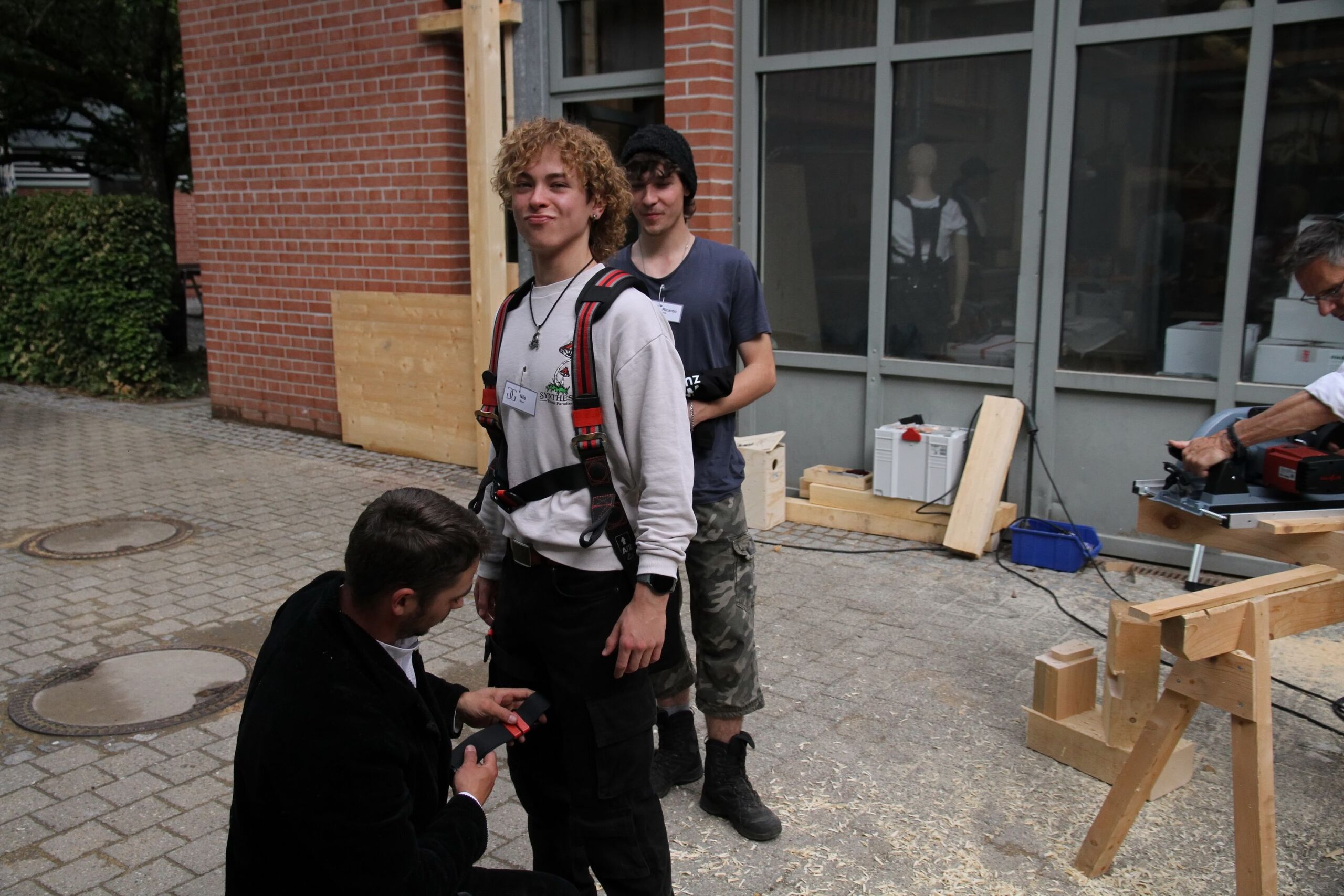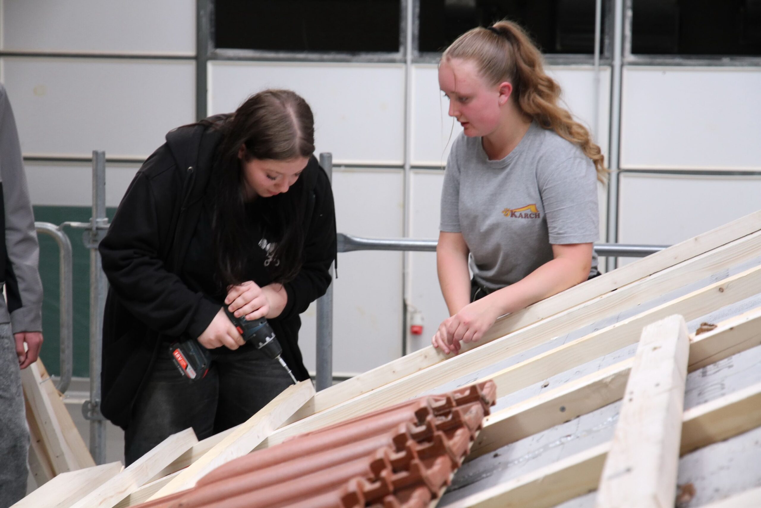 Bei den Steinmetzen entstanden individuelle Teelichthalter aus Stein, während es bei den Zimmerern sprichwörtlich „hoch hinaus“ ging – auf einem Übungsdach befestigten die Jugendlichen Leisten und hängten Dachziegel ein. Wer mutig war, konnte sogar mit einem Kran über den Werkstätten schweben und dabei Schrauben in Dachbalken eindrehen.