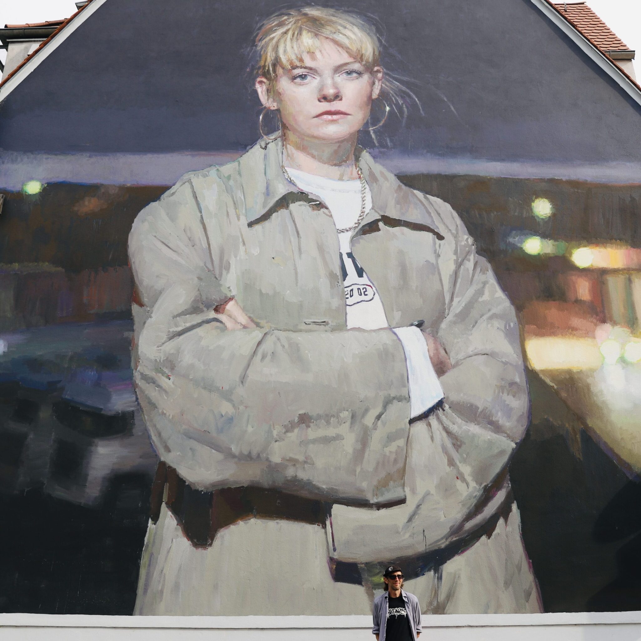 Weiter führte die Tour zum Werk „Escape from old ideas“ des deutschen Künstlers Akut. Das eindrucksvolle Porträt fordert dazu auf, die eigene „Maske“ abzulegen und einfach Mensch zu sein. Mit eindringlichem Blick und einer symbolhaften Bildsprache setzt sich das Werk mit Selbstreflexion, Identität und gesellschaftlichen Rollenbildern auseinander – mitten im urbanen Alltag.