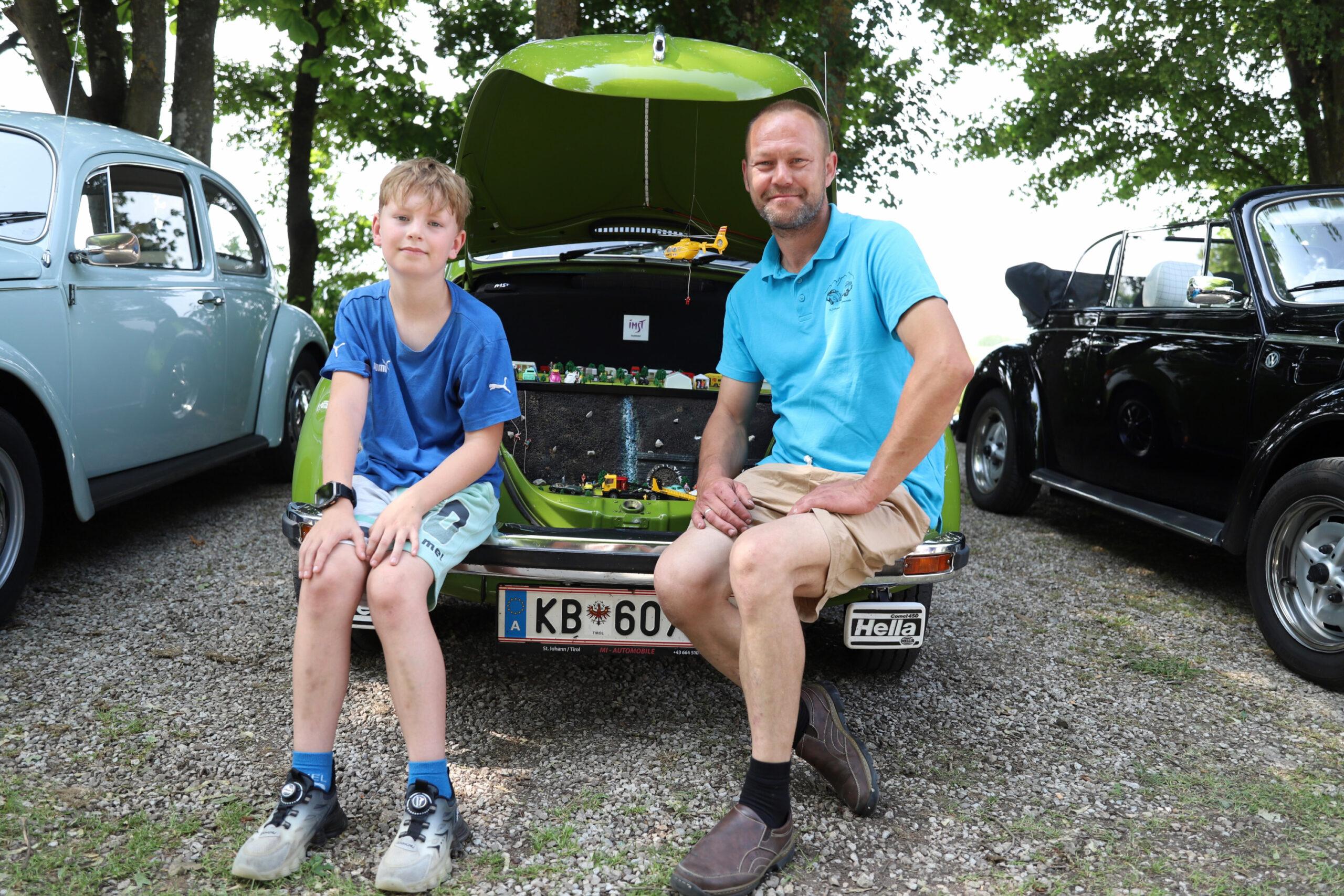 Wieder reisten Teilnehmer aus Nah und Fern an: Die weiteste Anreise hatten Daniel und Sebastian aus St. Ulrich am Pillersee in Österreich. Mit ihrem VW Käfer Baujahr 1976 und einer detailreichen Miniaturwelt im Kofferraum, die das Käfer- und Oldtimertreffen in Imst-Tarrenz zeigt, sorgten sie für staunende Blicke.