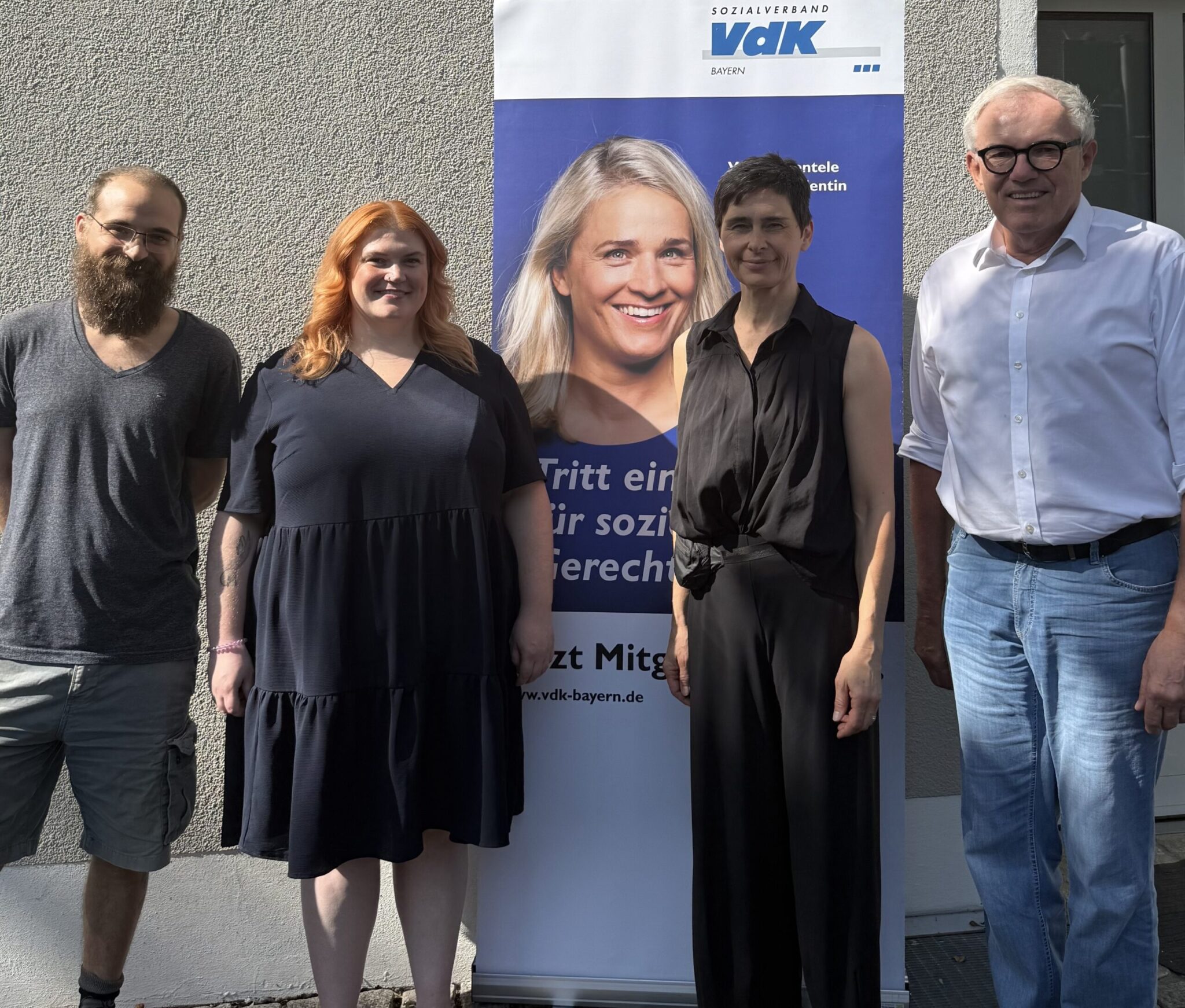 Foto: Zum Erfahrungsaustausch vor der Kreisgeschäftsstelle des VdK am Paradeplatz: (von rechts) Kreisvorsitzender Achim Werner, Kreisgeschäftsführerin Birgit Merk, MdB Sarah Vollath und ihr Mitarbeiter Dominik Eigner.