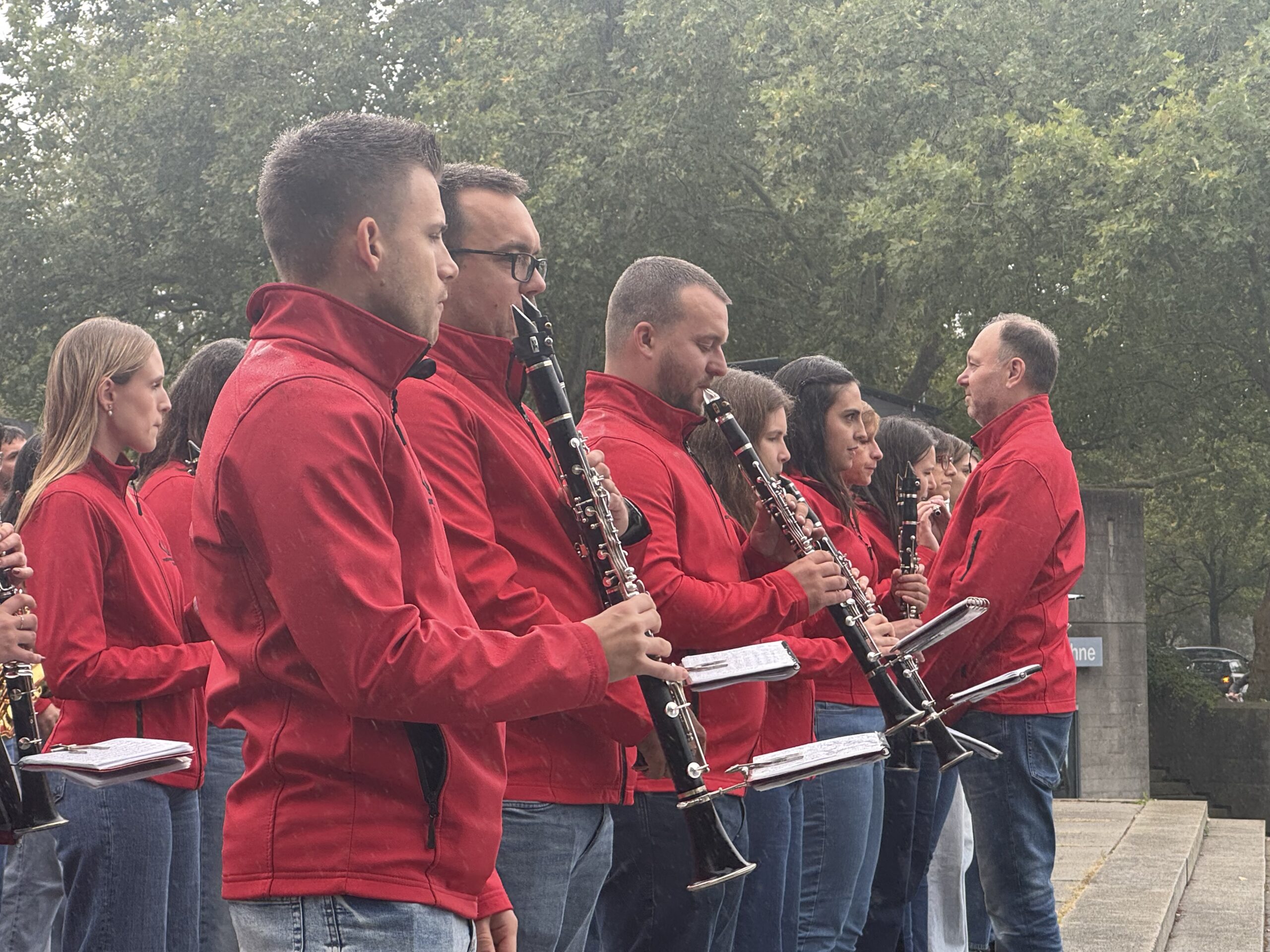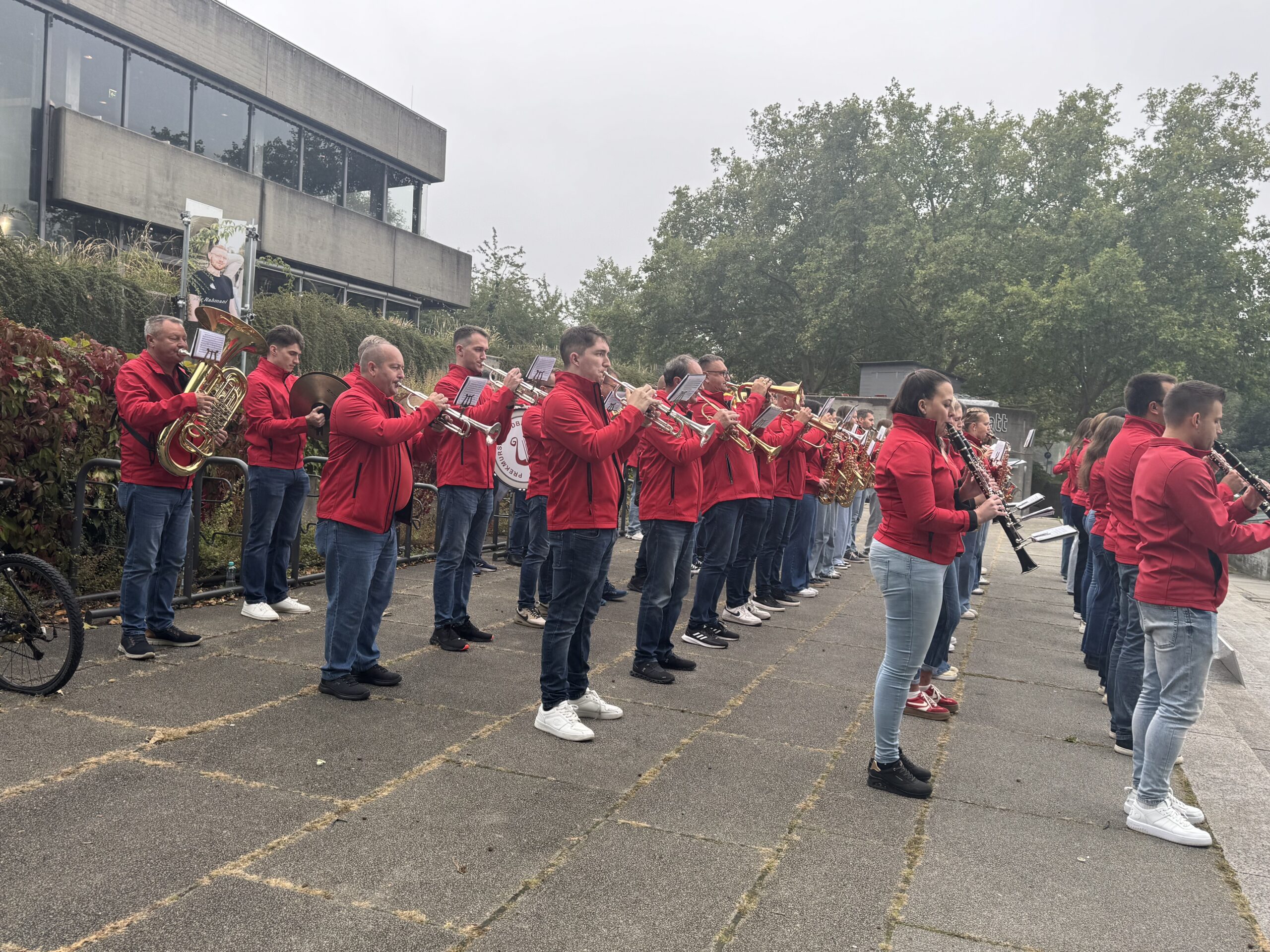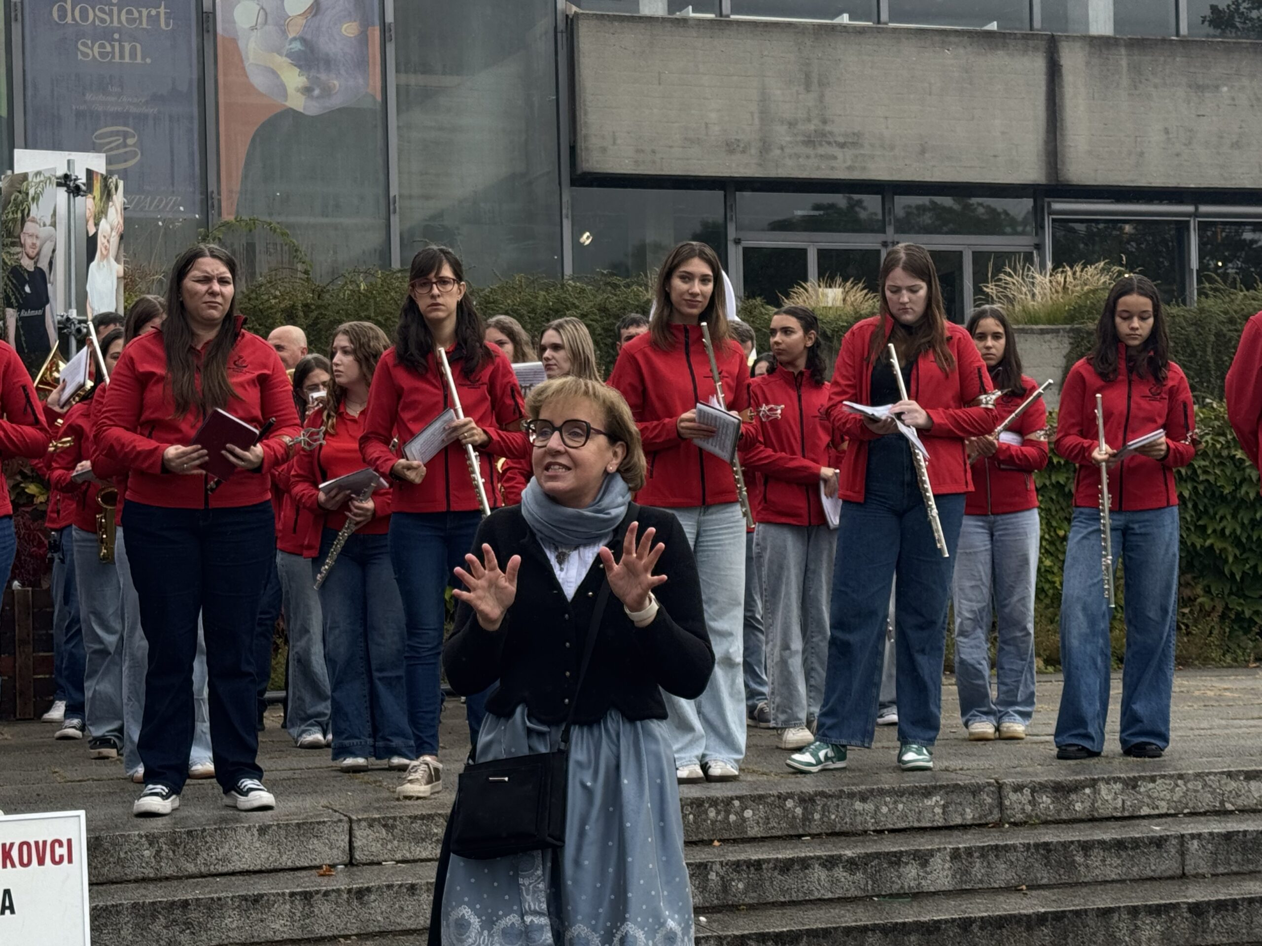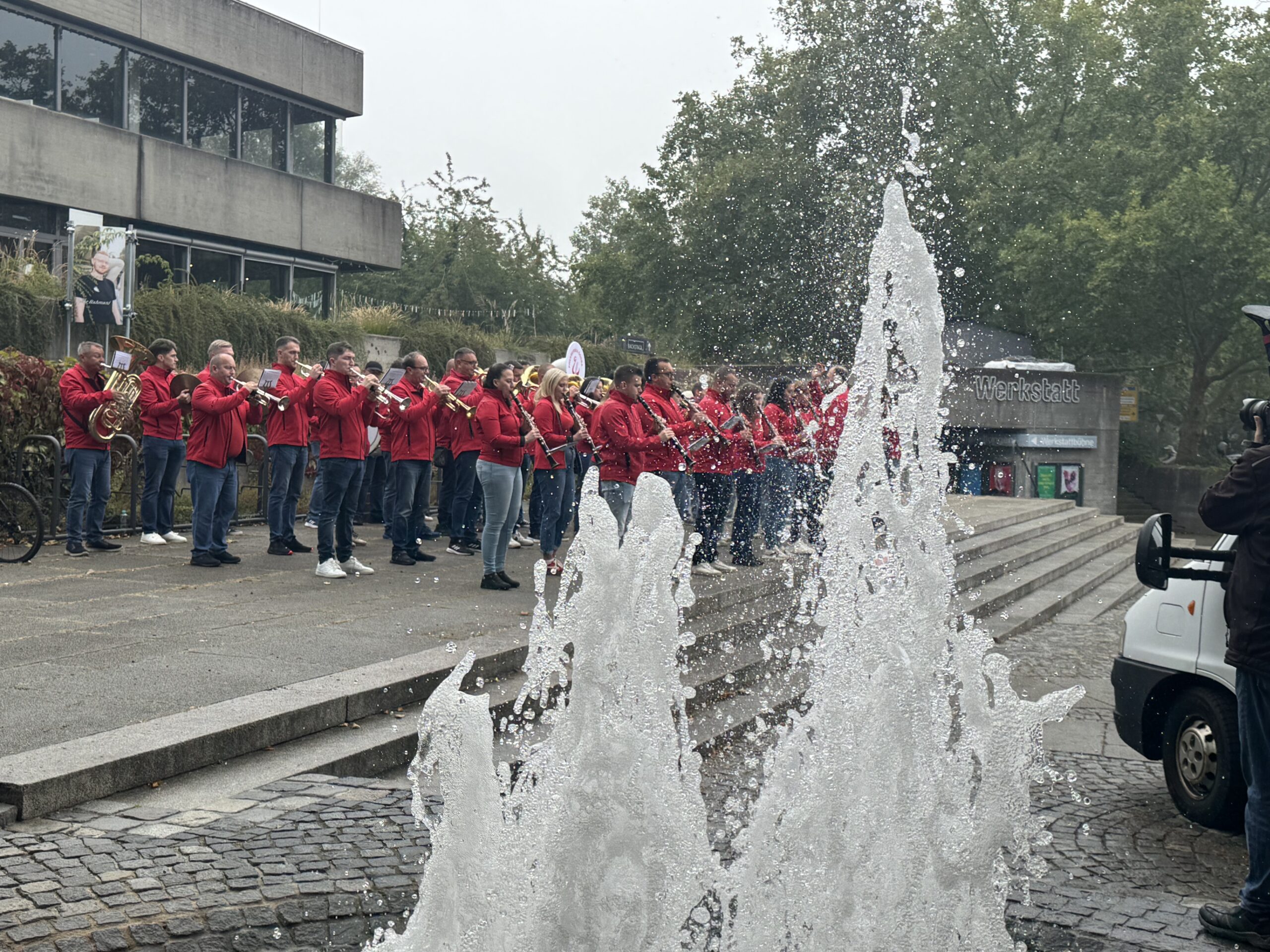 Anlässlich des 50. Volksfestes in Ingolstadt, trafen auch einige Partnerstädte der Stadt ein, um mitzufeiern. Zur großen Freude der Wochenmarktbesucher fanden sich die Blaskapelle „Prekmurska Godba Bakovci“  aus Murska Sobota und Dudelsackspieler aus Kirkcaldy vor dem Stadttheater ein, um die Menschen mit ihren musikalischen Darbietungen zu erfreuen. Viele Wochenmarktbesucher ließen es sich nicht nehmen, trotz des Nieselregens diese gelungene Überraschung zu feiern. (HaGa)