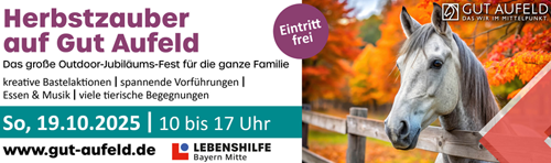 „Gut Aufeld steht seit 20 Jahren für Begegnung, Teilhabe und Gemeinschaft“, so Andreas Jehn, Geschäftsführer der Lebenshilfe Bayern Mitte. „Mit dem Herbstzauber möchten wir allen Interessierten die Möglichkeit geben, den Hof kennenzulernen und gemeinsam ein besonderes Jubiläum zu feiern.“