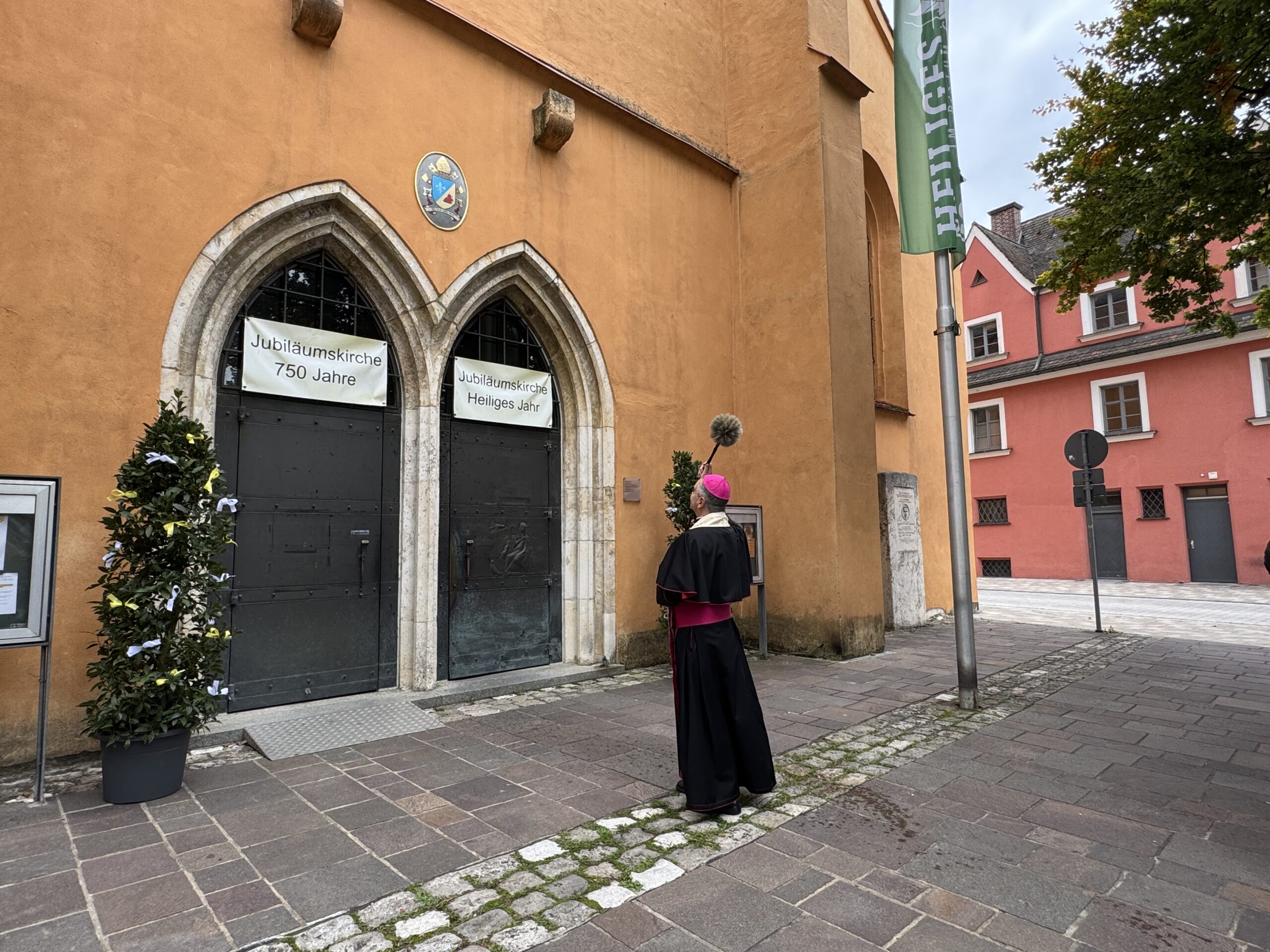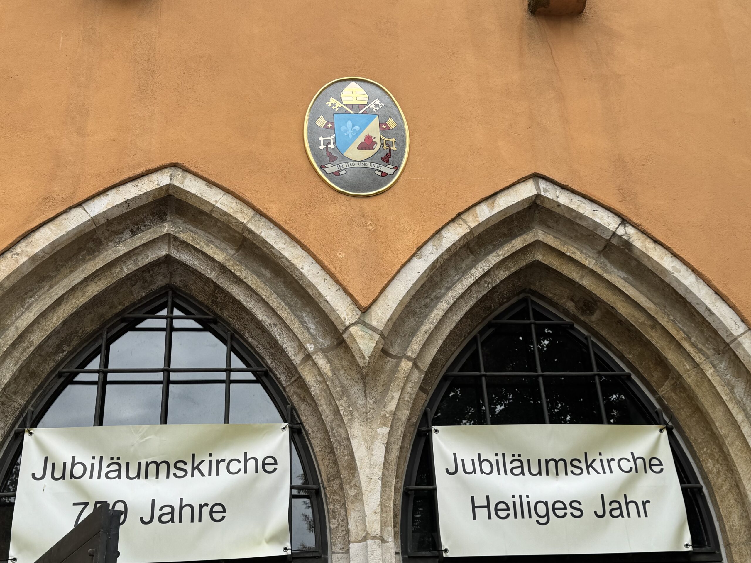 Bereits am Samstag, 11. Oktober, wurde um 14.30 Uhr das neue päpstliche Wappen an der Franziskanerkirche angebracht und feierlich geweiht. Jeder Papst führt ein eigenes Wappen mit Symbolen, die für seinen Namen und seine Amtsauffassung stehen.