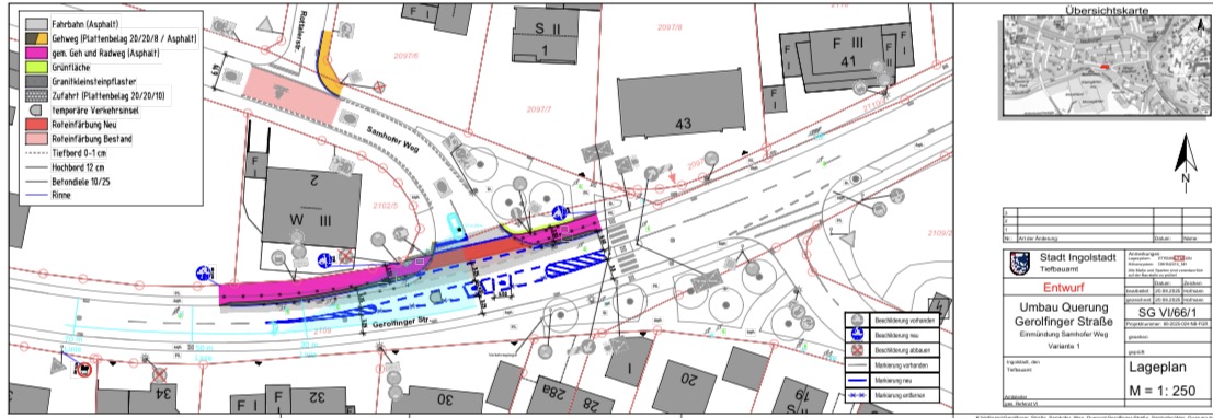 Ein kleiner Fortschritt zeigt sich bei der Querung der Gerolfinger Straße (Hauptroute 09): Hier wurden Details zur Verbesserung der Verkehrssicherheit abgestimmt.