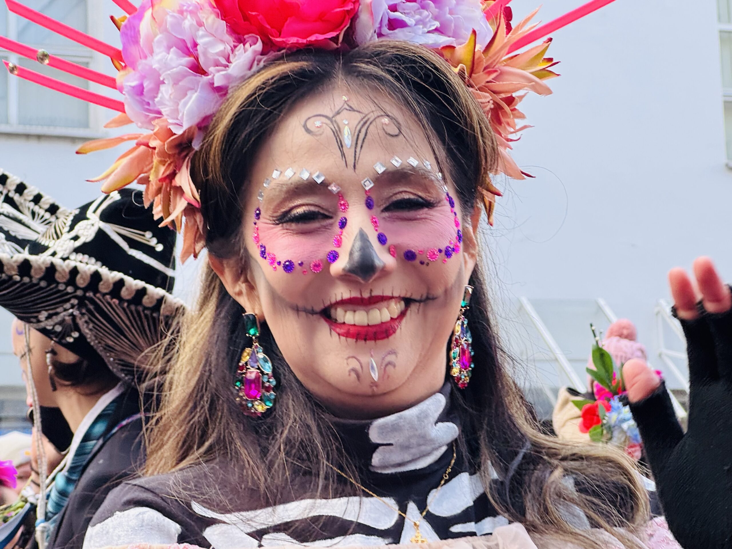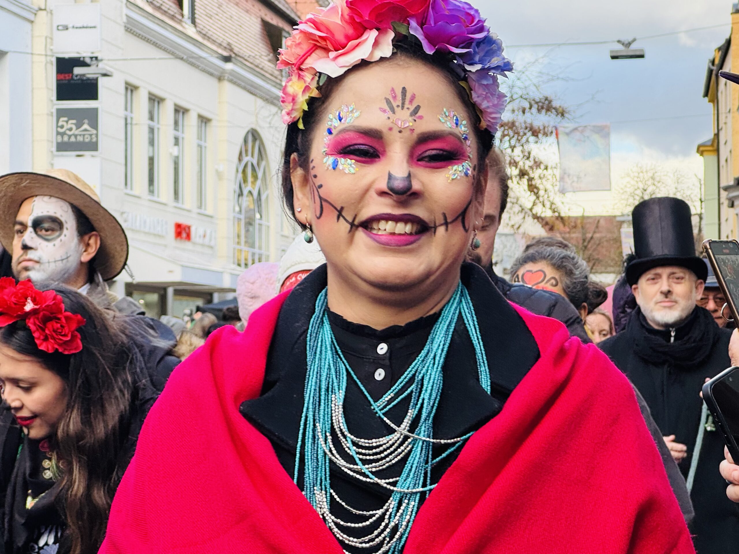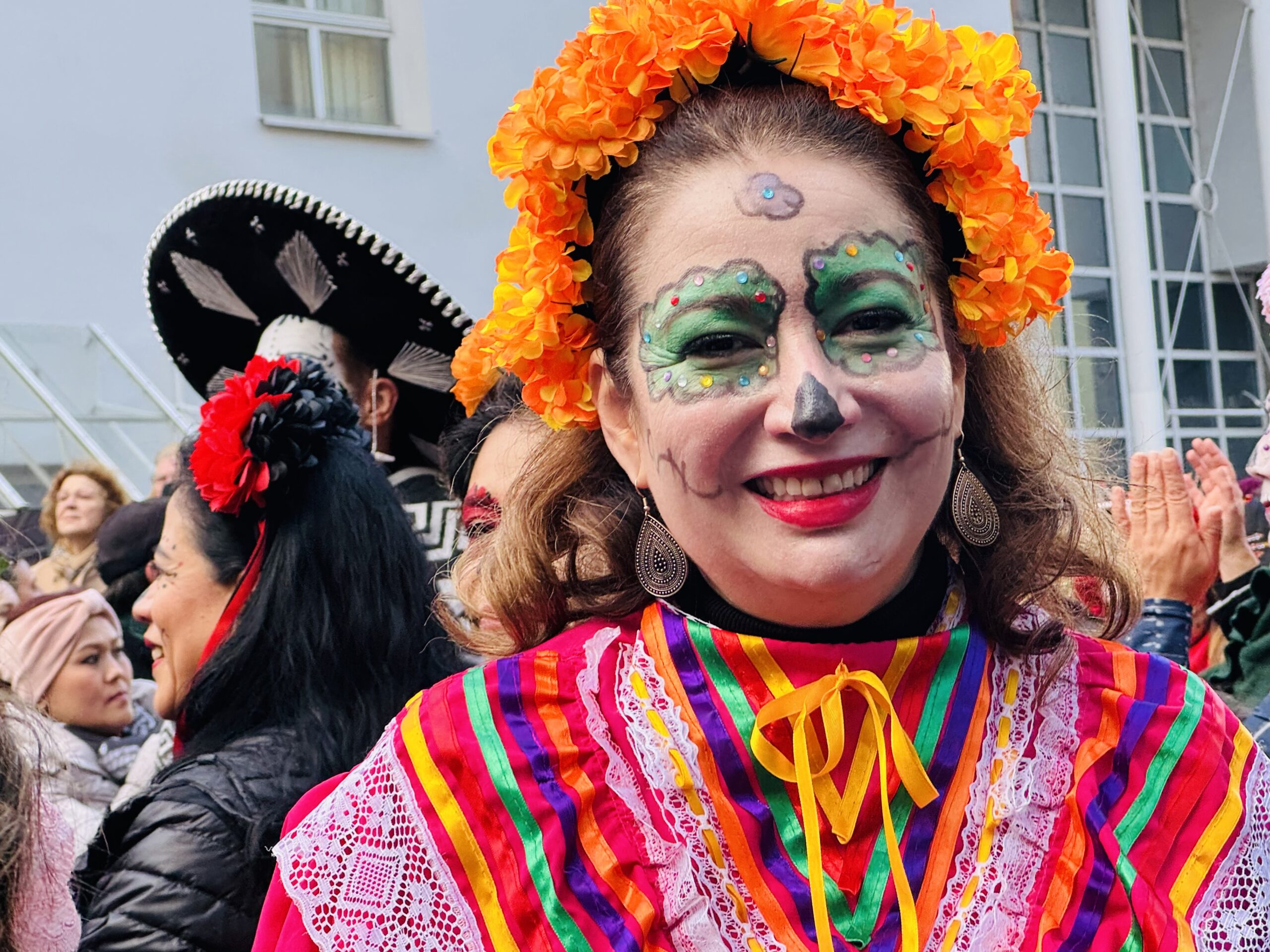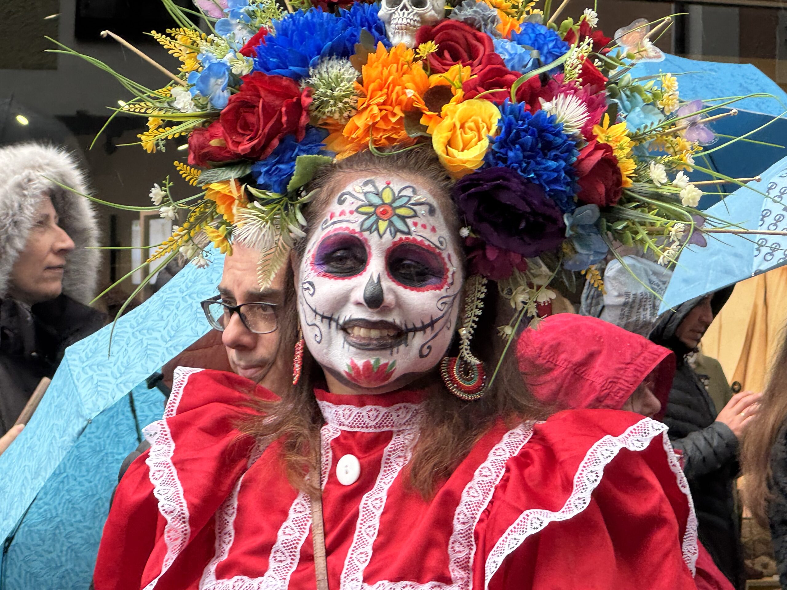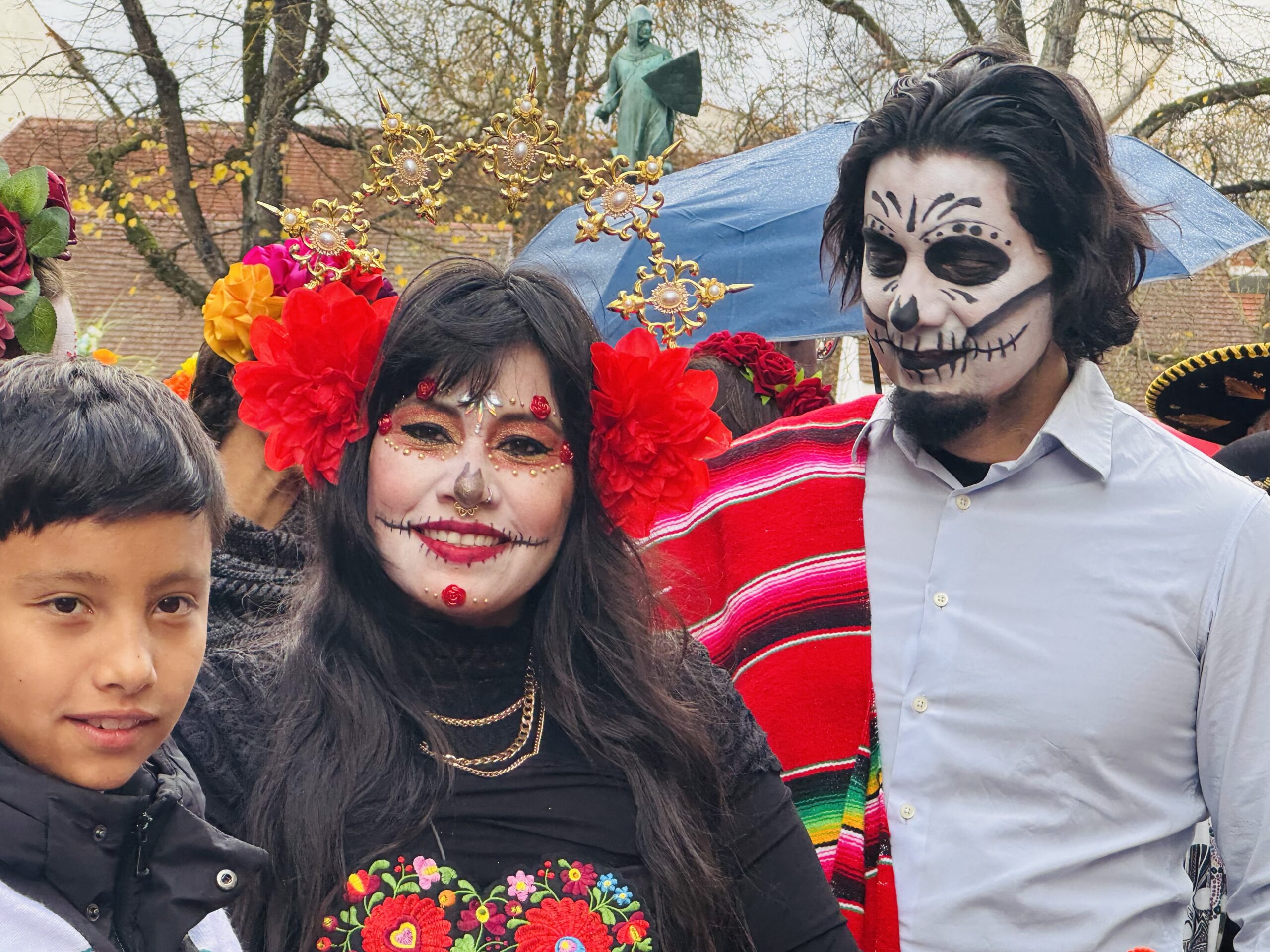 Trotz unfreundlichen Wetters säumten mehrere Hundert Menschen die Straßen, um an der farbenprächtigen Prozession teilzunehmen – begleitet von Musik, Blumen, geschmückten Altären und traditionellen Kostümen, die den Geist des mexikanischen Feiertags lebendig werden ließen.