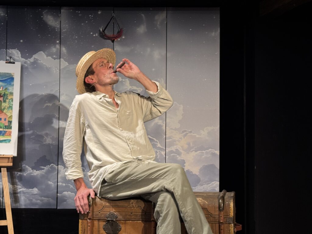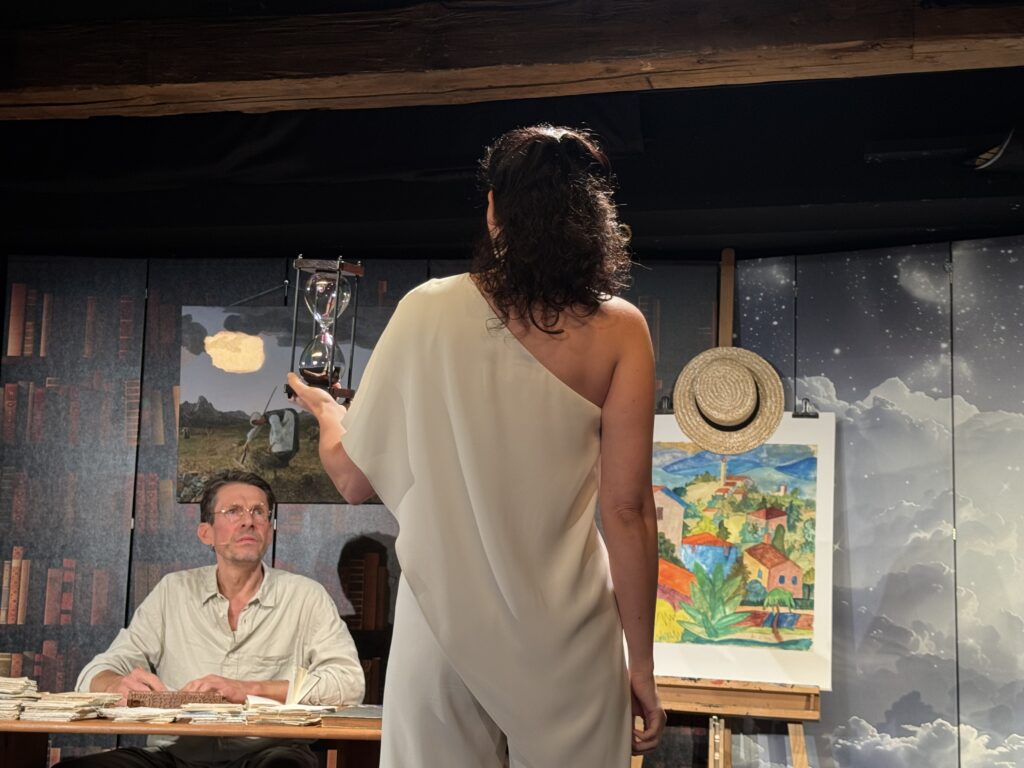Die Muse, verkörpert von der vielseitigen Künstlerin, Autorin und Chansonsängerin Anna Janina, packt für den Dichter – der gerade noch sein letztes Gedicht „Knarren eines geknickten Astes“ vollendet – charmant, aber bestimmt all die Erinnerungen ein, die für ihn bedeutsam waren: jene, die ihn prägten, aber auch die, die ihn beinahe zerbrechen ließen. Mehrmals hatte Hesse versucht, seinem Leben ein Ende zu setzen, und verbrachte zeitweise auch Aufenthalte in psychiatrischen Kliniken. Wie schwierig der in seinen Werken so feinfühlige Autor im privaten Leben sein konnte, zeigt die Szene mit seiner ersten Ehefrau Mia, die ihn vergeblich um Zuwendung bittet – und brüsk zurückgewiesen wird, weil er „Luft brauche, um zu lieben“.