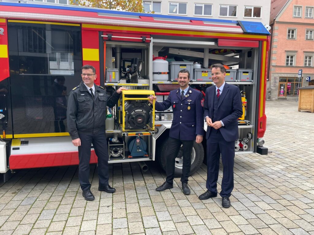 Übergeben wurde das Fahrzeug an Kommandant Maximilian Binner von Branddirektor Josef Huber und Oberbürgermeister Michael Kern. Investitionssumme: 450.000 Euro.
