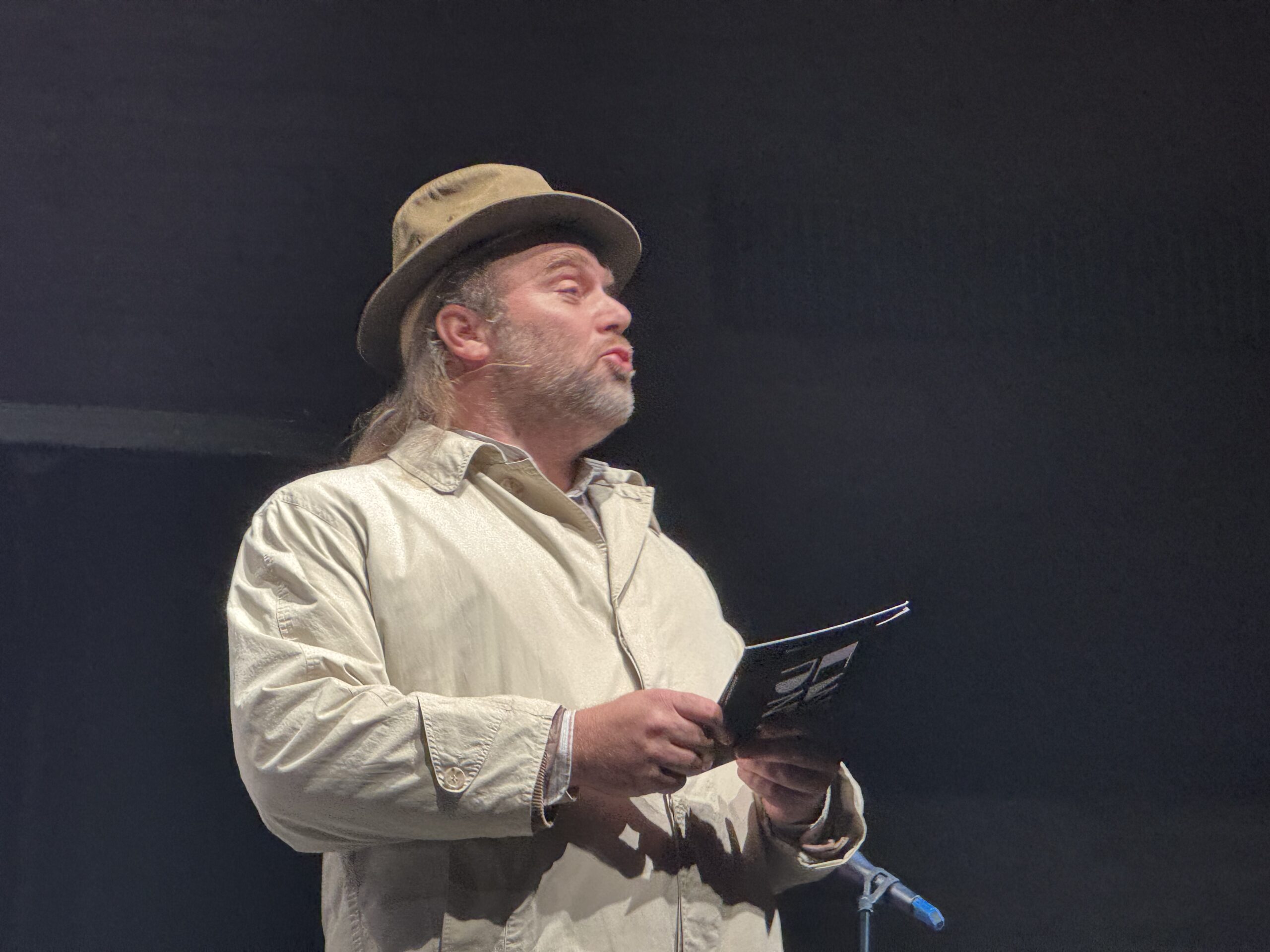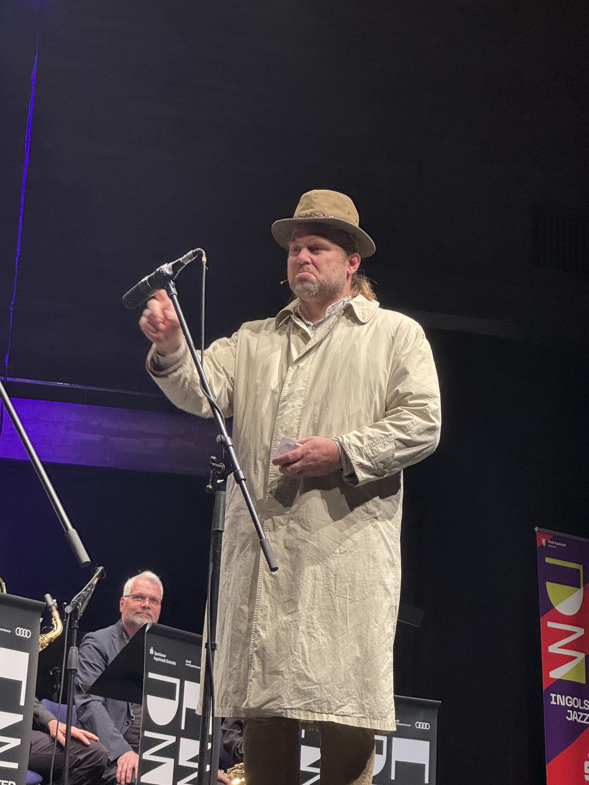 Was für ein Auftakt: Ein ungepflegter Columbo-Verschnitt betritt die Bühne und klebt als Gerichtsvollzieher „Kuckuckssiegel“ auf die Instrumente. Kabarettist Andreas Martin Hofmeir gibt einen skurrilen Vertreter der Regierung von Oberbayern, der ohne jedes Verständnis für das Geschehen – die Eröffnung der 42. Ingolstädter Jazztage – durch den Abend kommentiert und dabei stets die Ausgaben der Stadt kritisch im Blick hat.