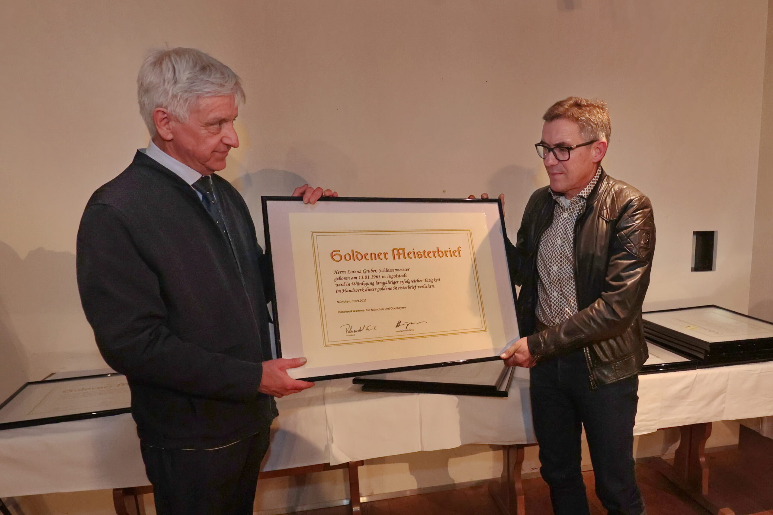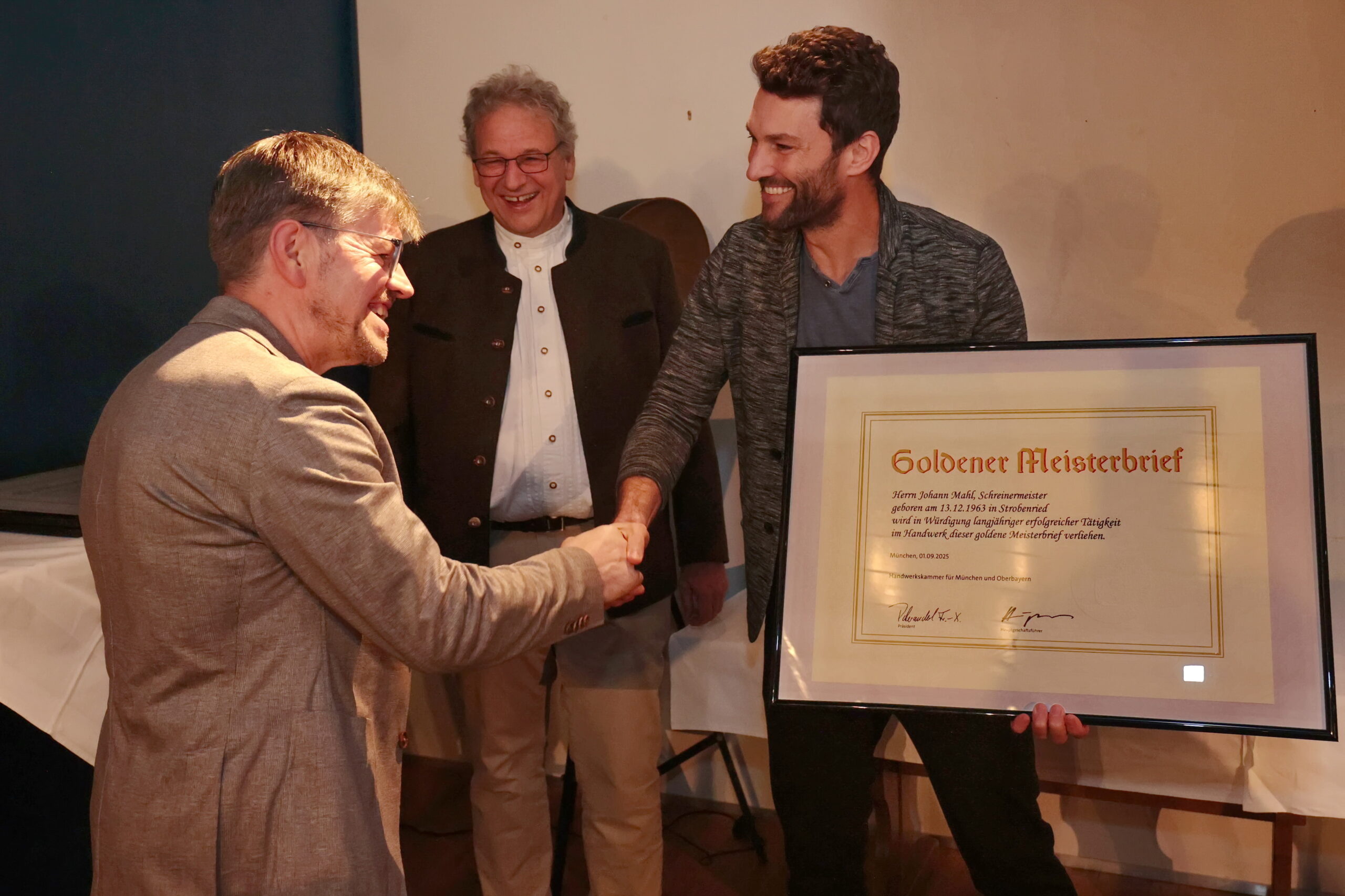 Die Vizepräsidentin der Handwerkskammer für München und Oberbayern, Carola Greiner-Bezdeka, stellte die „doppelte Symbolik“ des Goldenen Meisterbriefs heraus: Einerseits stehe er für die im Handwerk traditionell hohe Bereitschaft, sich anzustrengen, sich weiterzubilden und das Unternehmerhandwerk in all seinen Facetten zu beherrschen. Andererseits belege er eindrucksvoll, dass sich dieser Einsatz lohne. Zudem verwies Greiner-Bezdeka auf den Unterschied zwischen einem rein theoretischen Abschluss und einem handwerklichen Meister: „Der Meister ist Garant für die sprichwörtlich hohe Handwerksqualität – ein anerkanntes und bewährtes Siegel.“