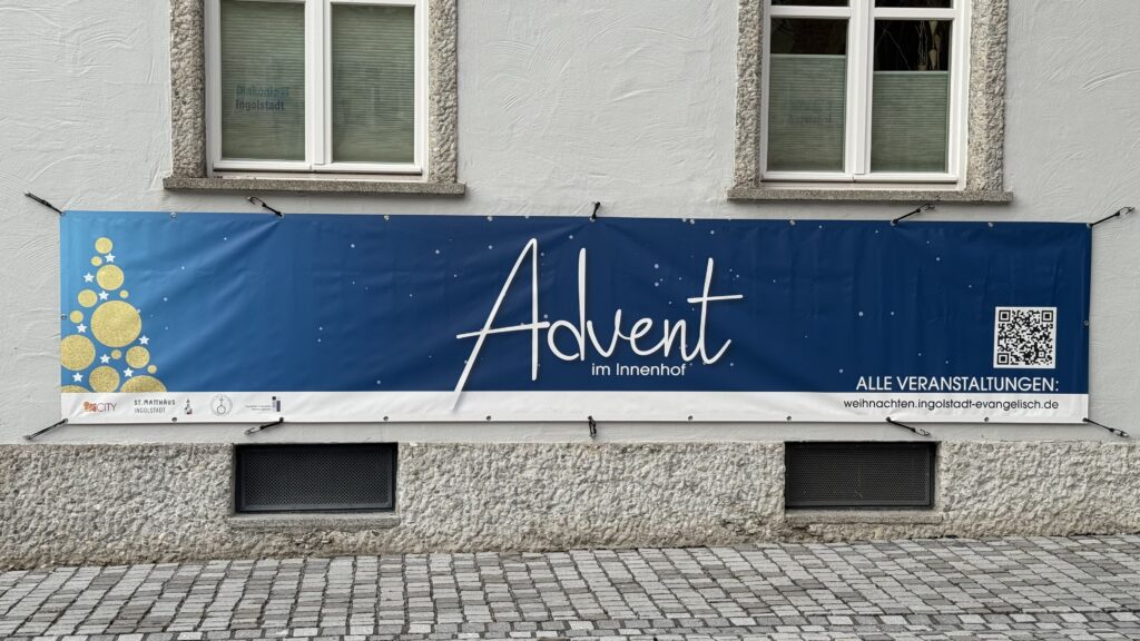 Wenn im Innenhof der Matthäuskirche Ingolstadt die vielen beleuchteten Kugeln in unterschiedlichen Größen zu funkeln beginnen, entsteht in der Ingolstädter Innenstadt eine besondere Adventsatmosphäre. Die Evangelische Jugend gestaltet den Ort jedes Jahr neu – mit Ständen, Deko und viel Engagement.