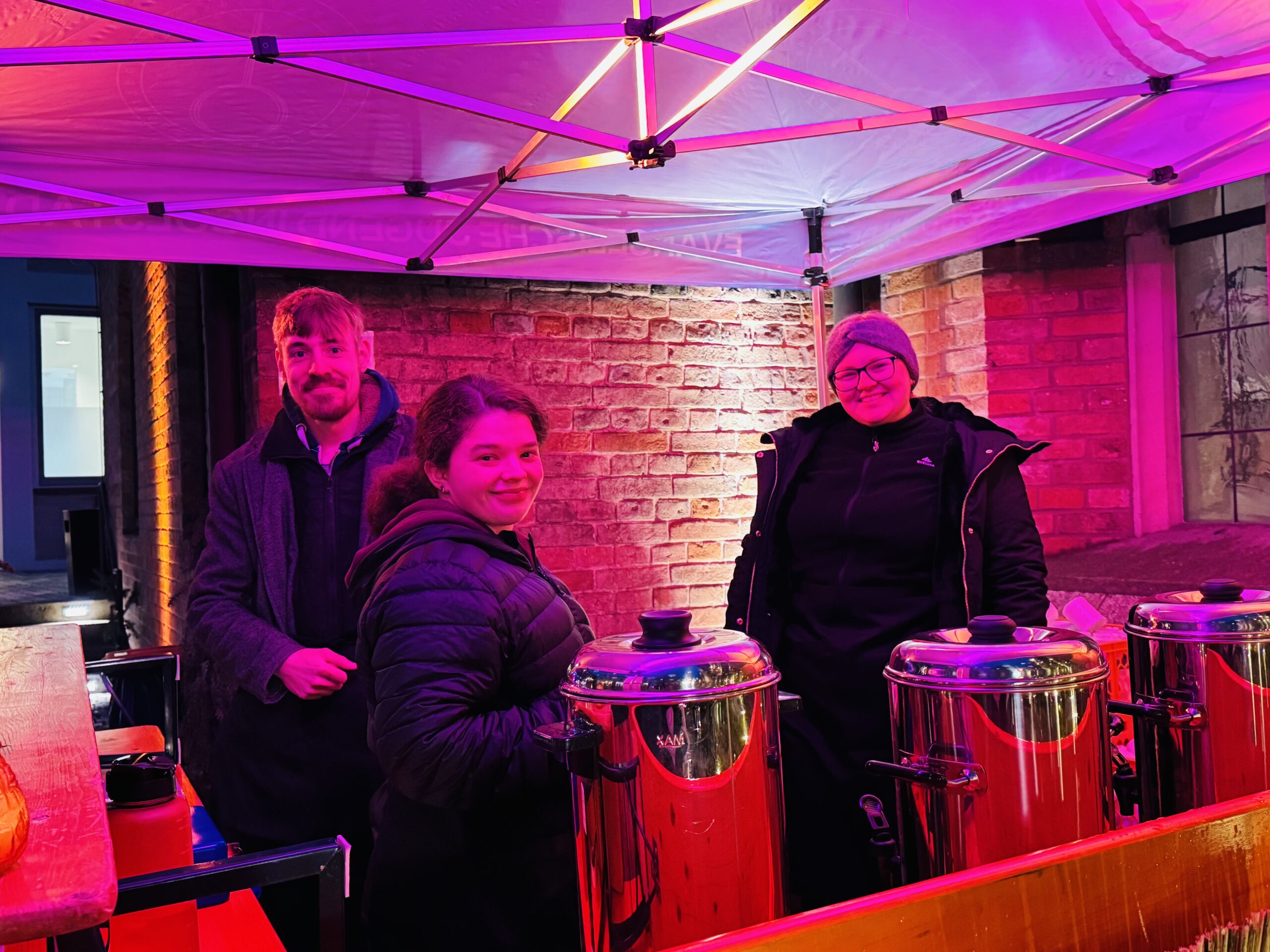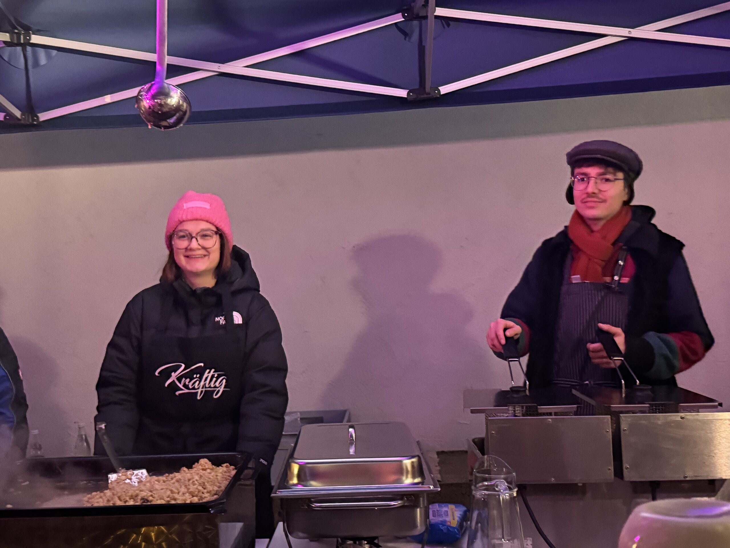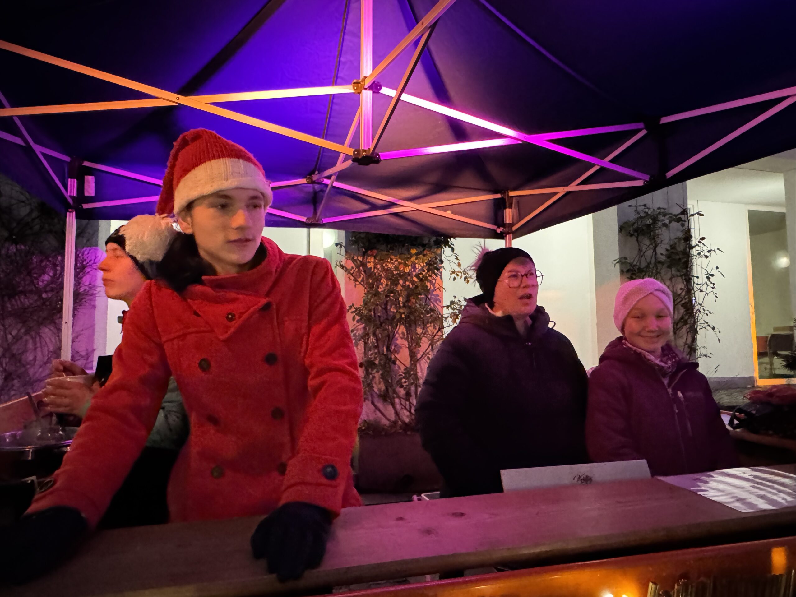 Neben einer Auswahl an Speisen, Getränken und vielfältigen Verkaufsständen locken vor allem Sängerin Kerstin Schulz und ihre Band, die beliebte (Weihnachts-)Songs neu interpretieren, zahlreiche Menschen in den stimmungsvoll geschmückten Innenhof.