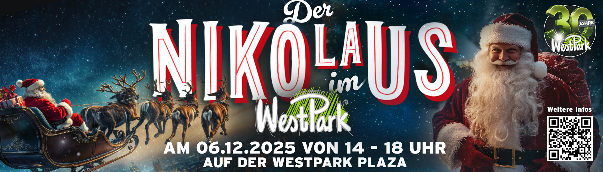Am Samstag, den 6. Dezember, kommt der Nikolaus in den WestPark Ingolstadt – mit jeder Menge Adventszauber im Gepäck. Auf der PLAZA wartet er mit seine Engelchen und verteilt süße Überraschungen für die ganze Familie. Während des Nikolaus-Besuchs verteilt der dm Drogeriemarkt zusätzlich an die Besucherinnen und Besucher Gutscheine für einen kostenlosen Fotodruck. Ein absolutes Highlight für die ganze Familie und das bei freiem Eintritt.