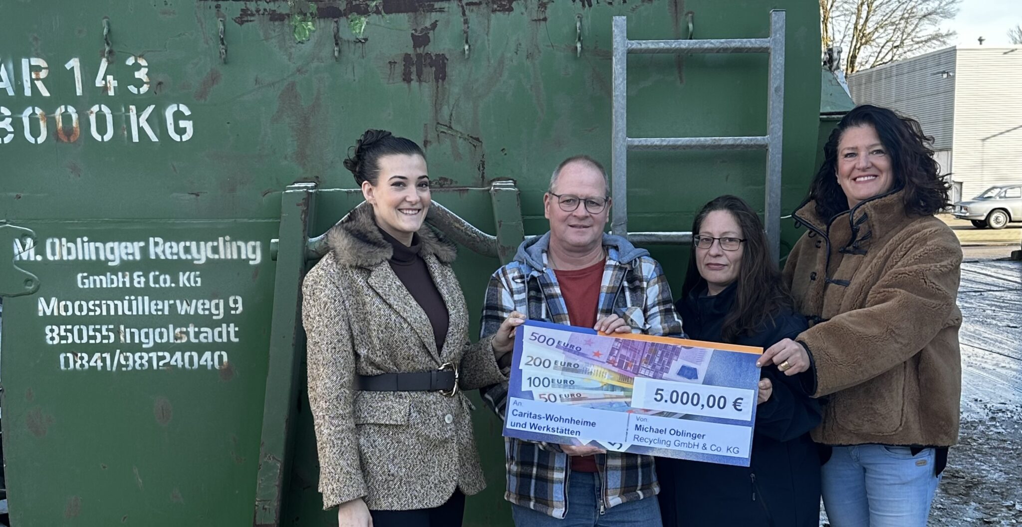 Recyclingfirma Oblinger unterstützt Caritas-Werkstätten Ingolstadt mit 5.000 Euro