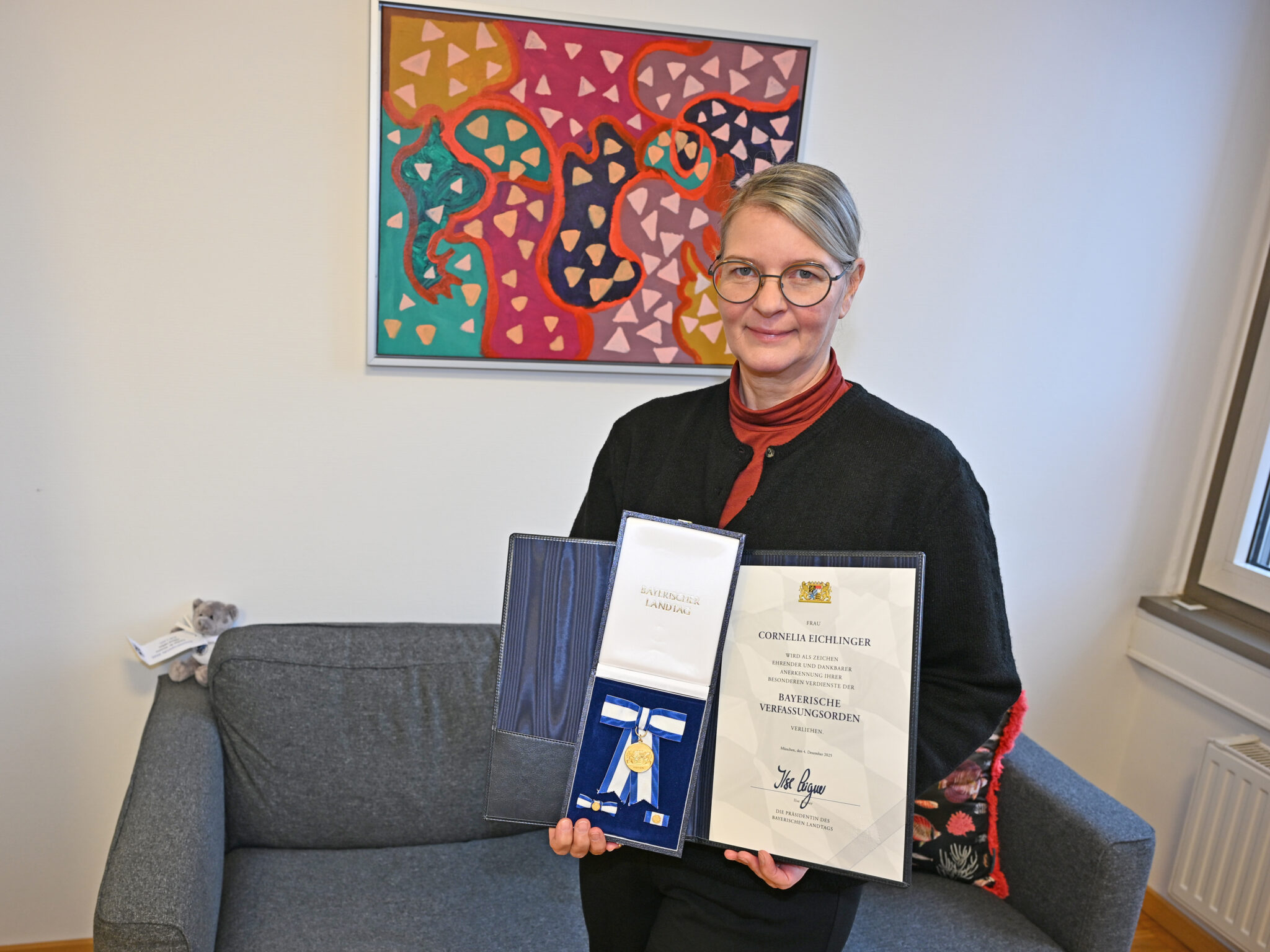 Den Bayerischen Verfassungsorden 2025 hat die Sozialarbeiterin Cornelia Eichlinger, Leiterin der Offenen Hilfen des Caritas-Zentrums St. Vinzenz in Ingolstadt, verliehen bekommen: „für ihren herausragenden Einsatz für Inklusion im Sport und ihr Engagement für die Special Olympics“, wie es in einer Mitteilung des Bayerischen Landtages heißt. Die Special Olympics sind die weltgrößte Sportbewegung für Menschen mit geistiger Behinderung. Cornelia Eichlinger erhielt die Auszeichnung vor kurzem zusammen mit 41 anderen Persönlichkeiten im Rahmen eines Festaktes im Bayerischen Landtag von Landtagspräsidentin Ilse Aigner. „Das ist eine Riesenehre. Ich denke, ich habe den Preis stellvertretend für alle ehrenamtlichen und hauptamtlichen Engagierten erhalten, die sich für Inklusion im Sport einsetzen“, sagte die Ingolstädter Preisträgerin.