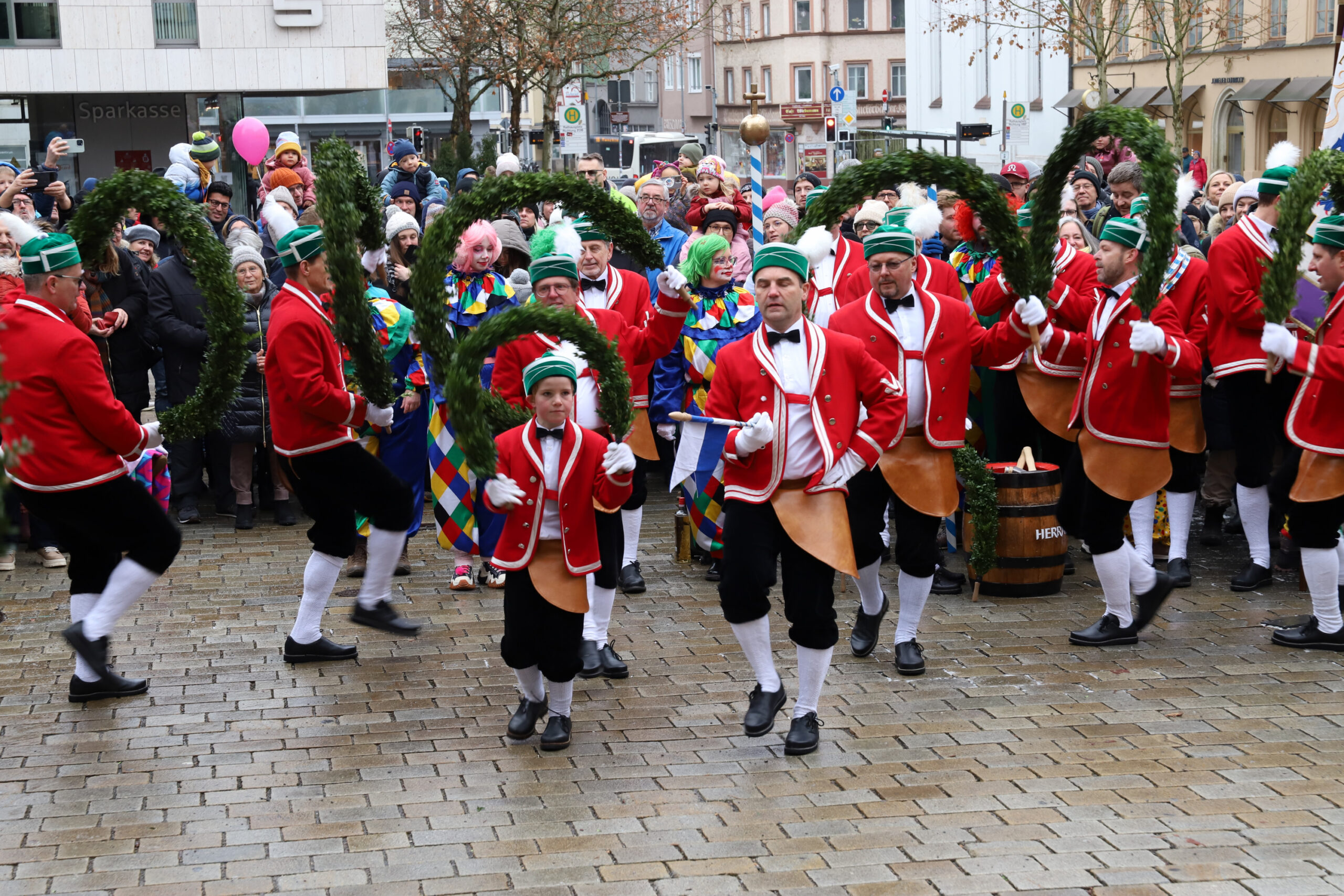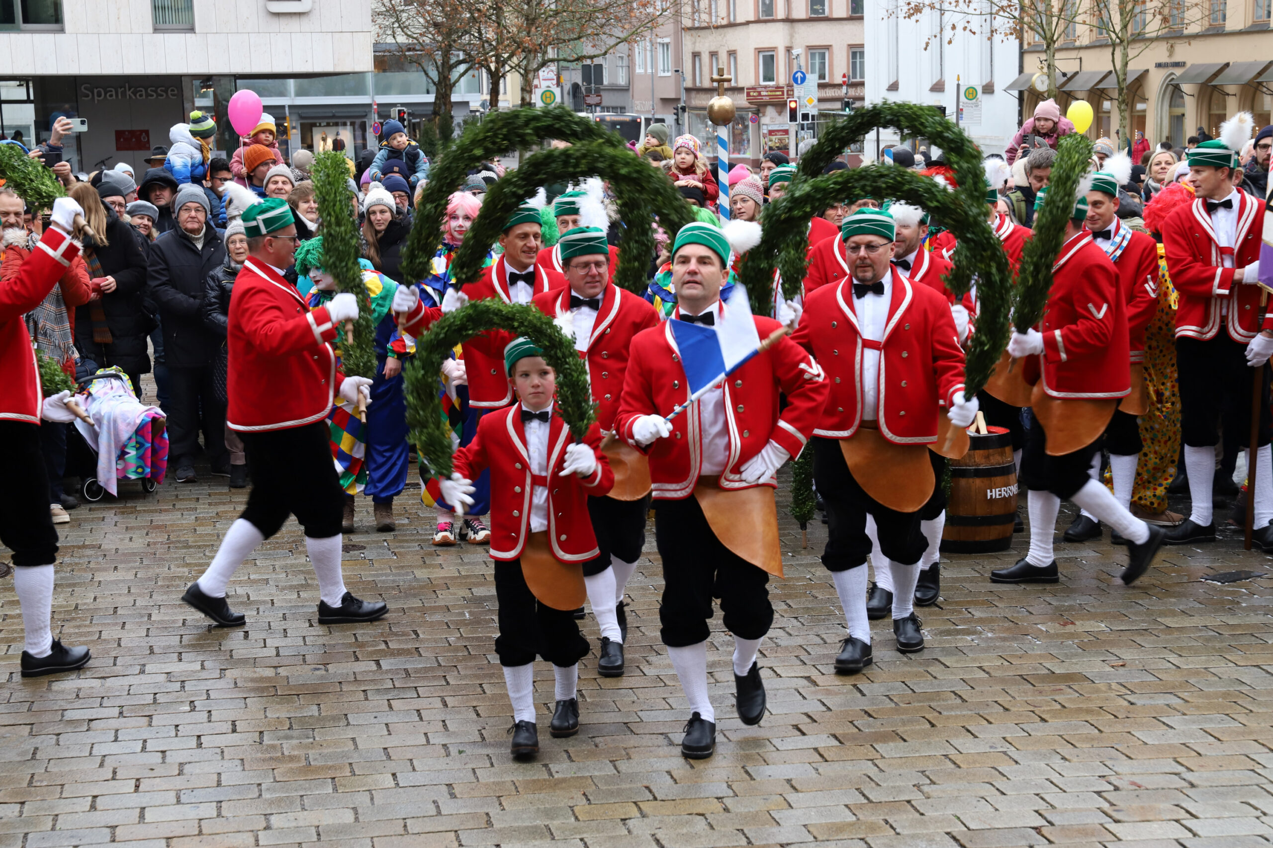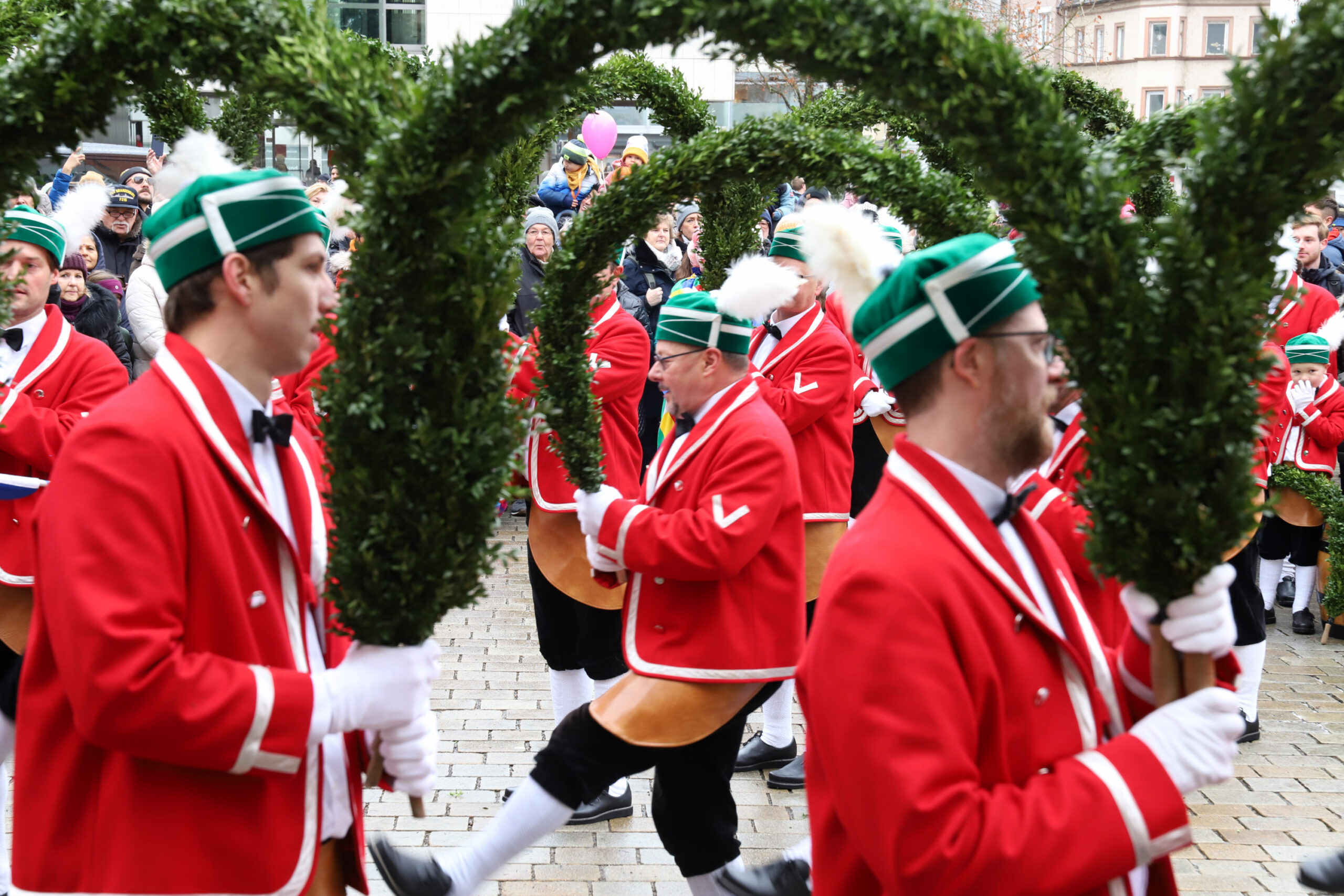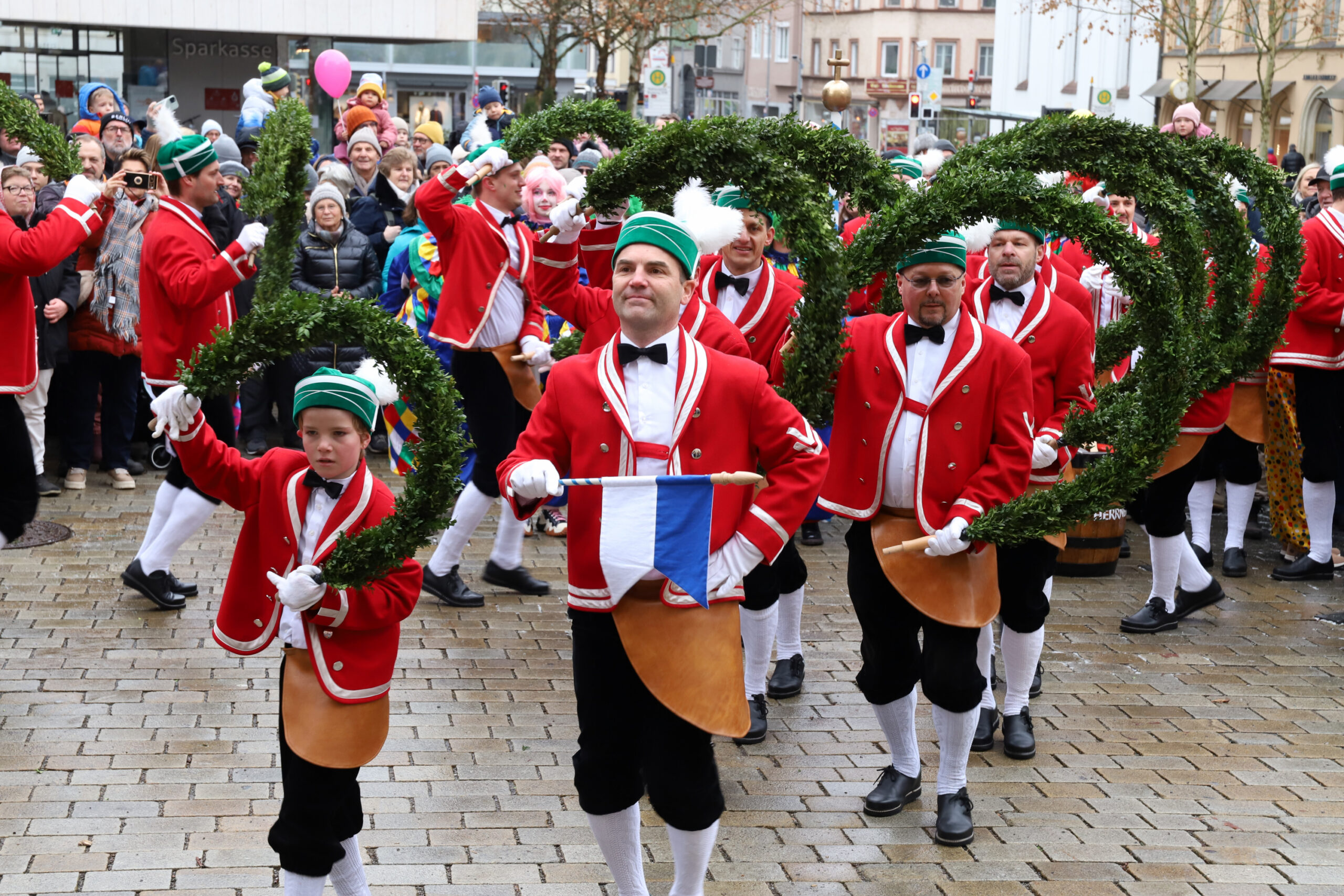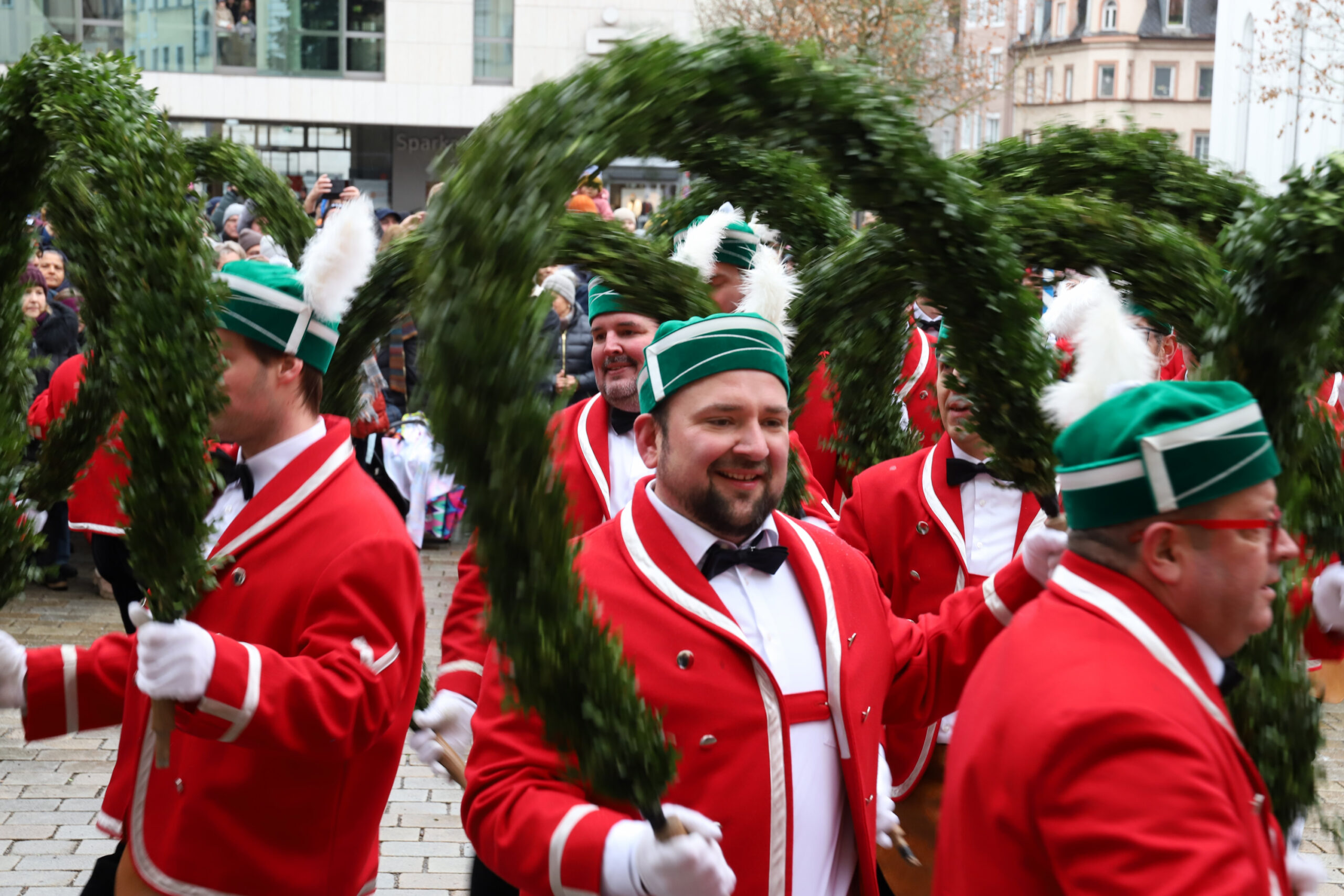 Mit dem Gottesdienst um 10 Uhr im Liebfrauenmünster begann am Vormittag ein besonderer Tag für die Stadt. Um 11 Uhr zogen die Ingolstädter Schäffler auf den Rathausplatz und eröffneten dort ihre Saison. Vor dicht gedrängtem Publikum erfüllten Musik, Reifen und Tracht die Innenstadt – ein seltenes Schauspiel, das Ingolstadt nur alle sieben Jahre erlebt.