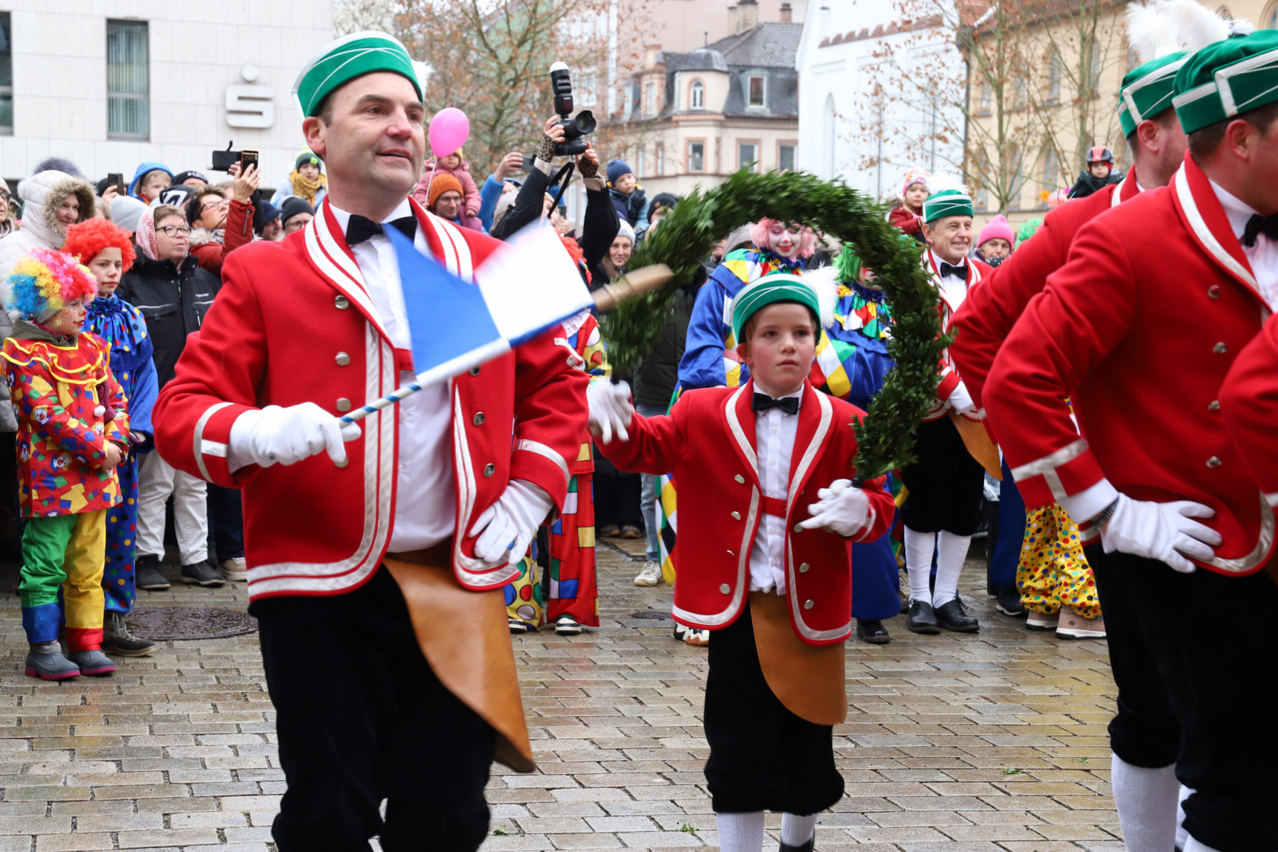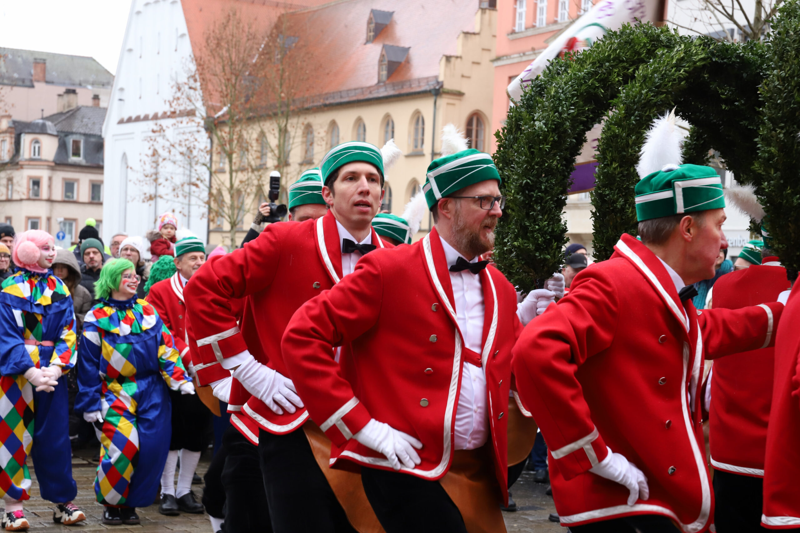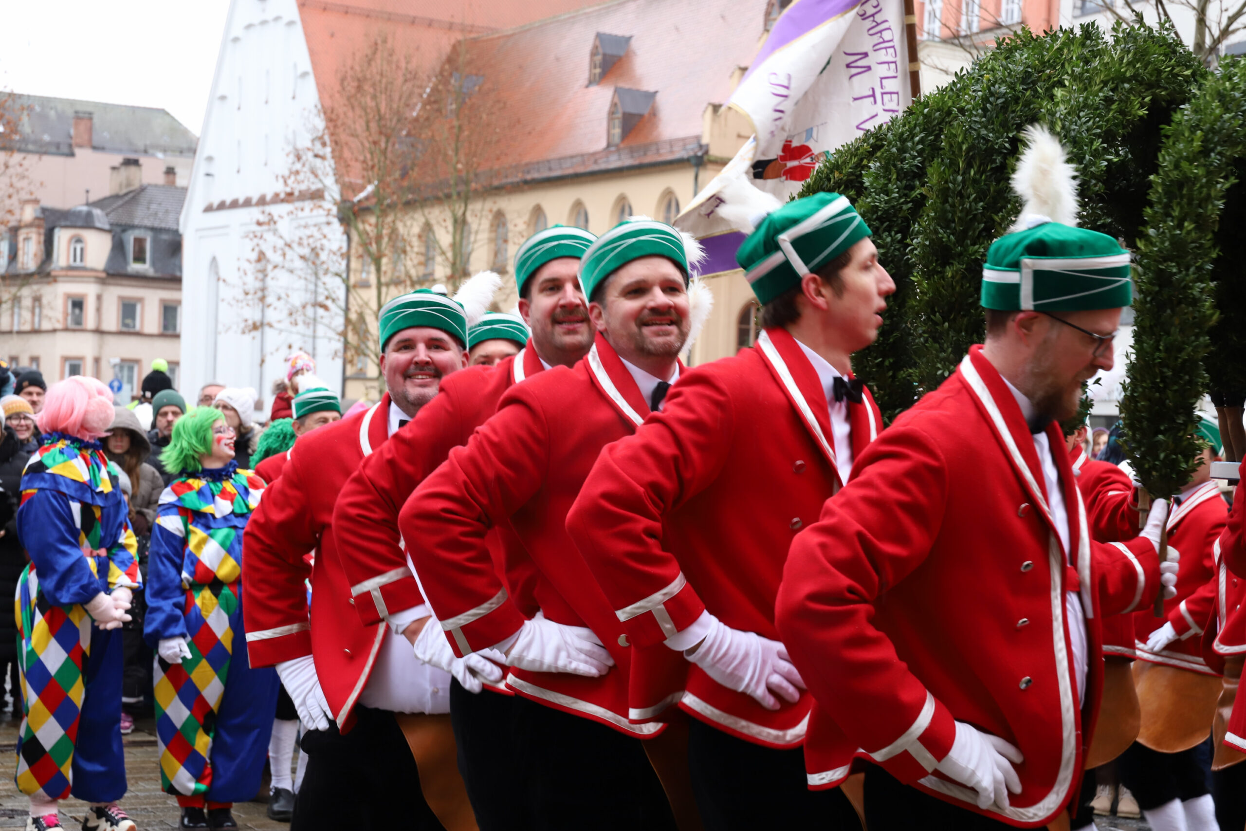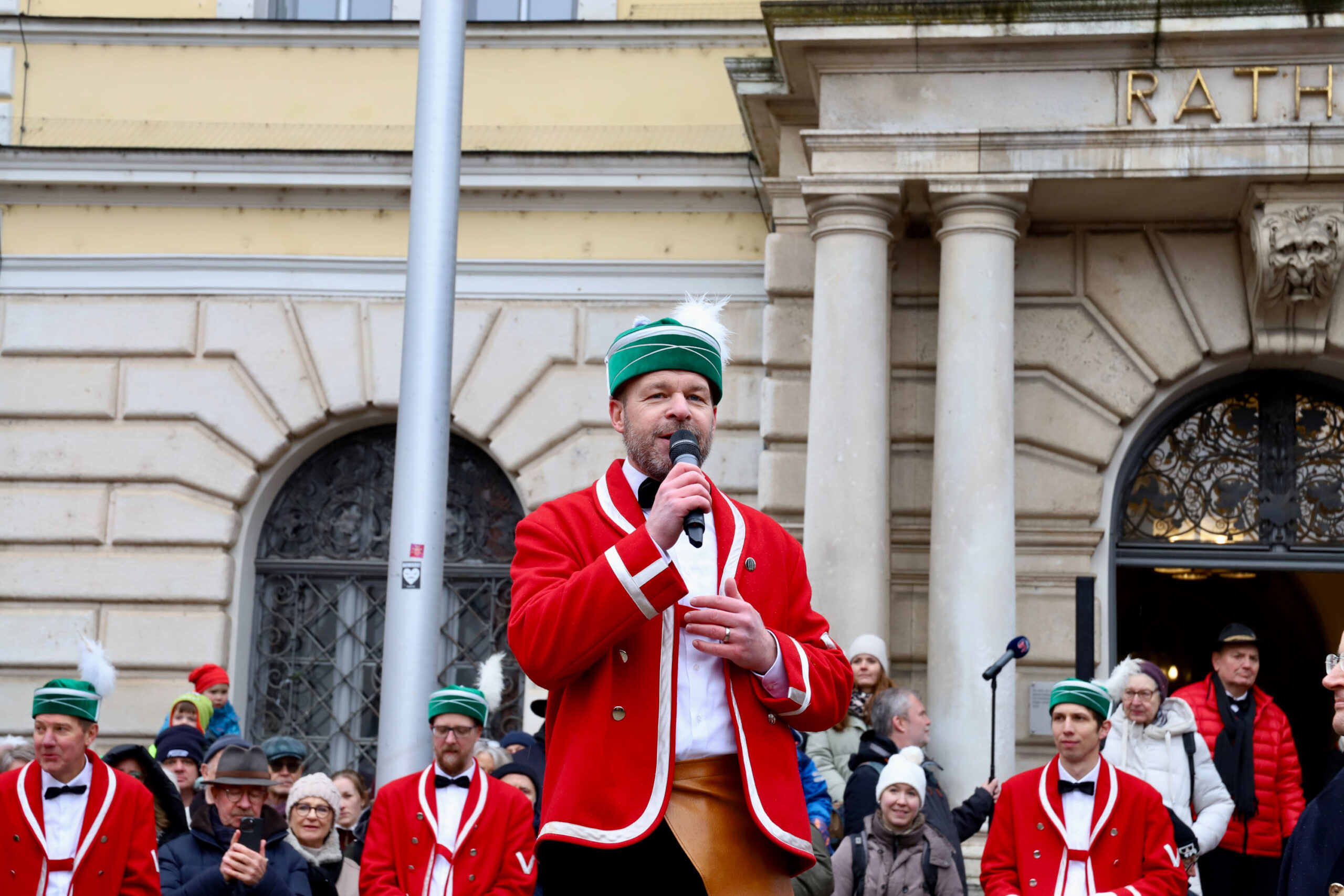 Mit dem Gottesdienst um 10 Uhr im Liebfrauenmünster begann am Vormittag ein besonderer Tag für die Stadt. Um 11 Uhr zogen die Ingolstädter Schäffler auf den Rathausplatz und eröffneten dort ihre Saison. Vor dicht gedrängtem Publikum erfüllten Musik, Reifen und Tracht die Innenstadt – ein seltenes Schauspiel, das Ingolstadt nur alle sieben Jahre erlebt.