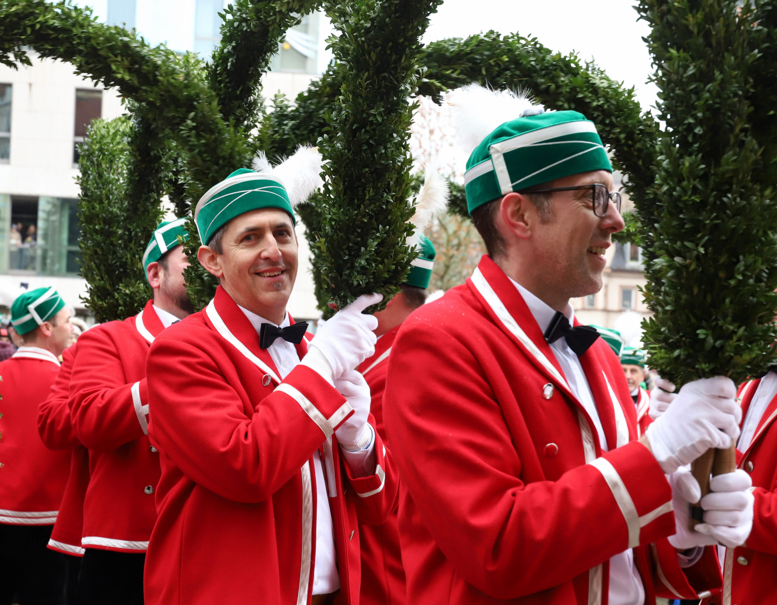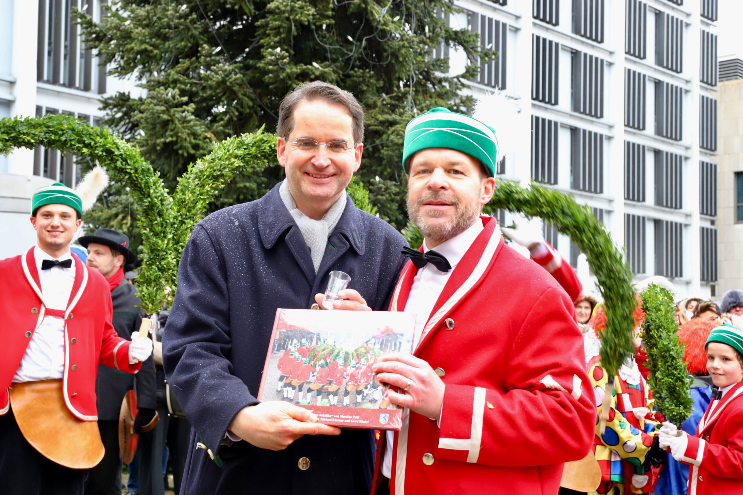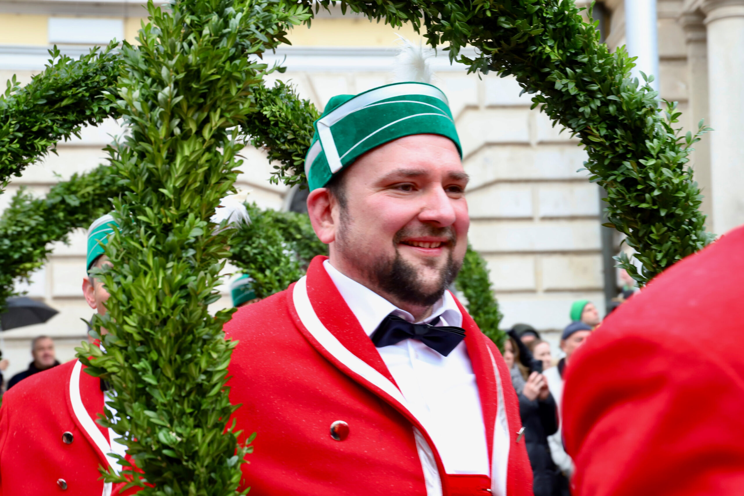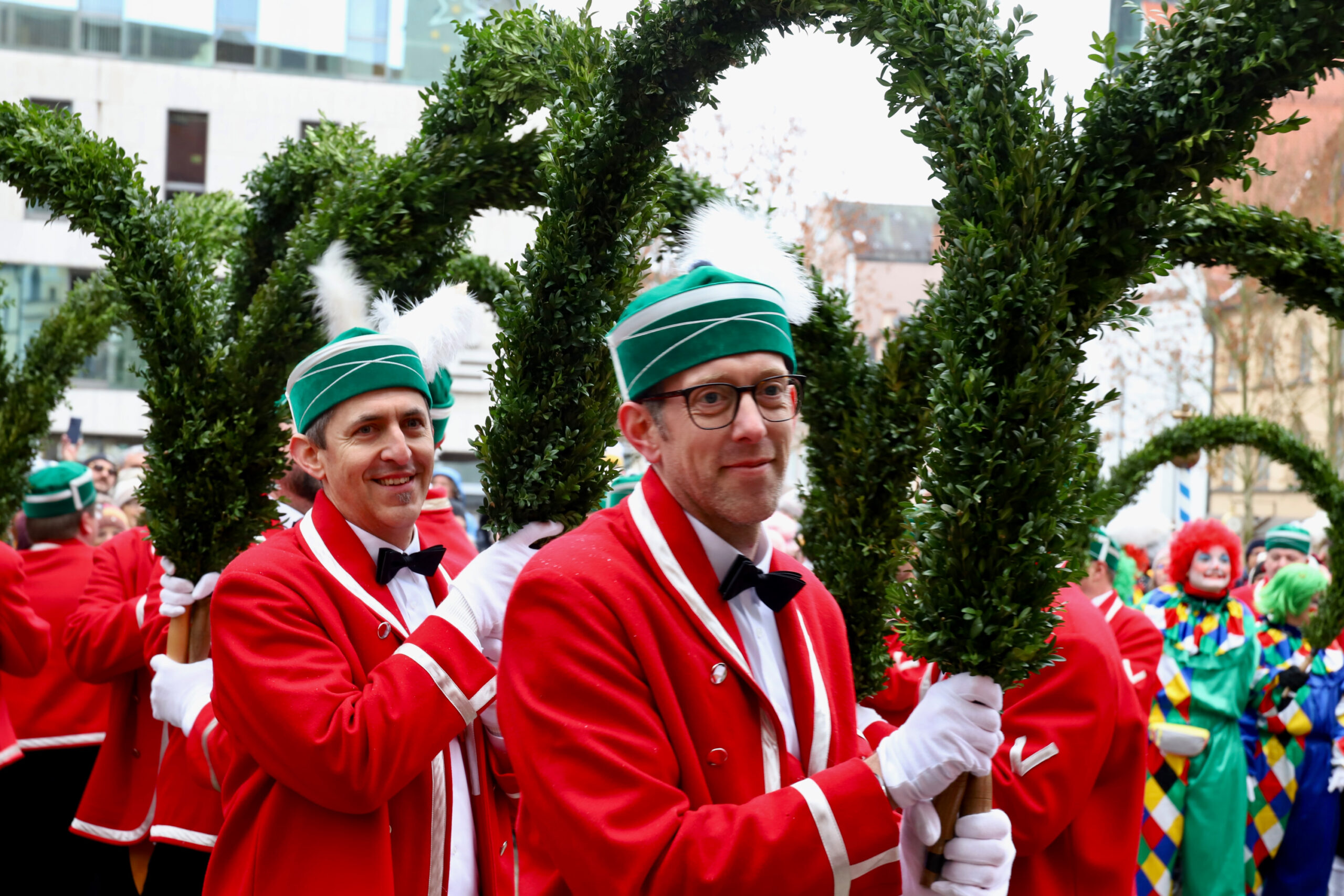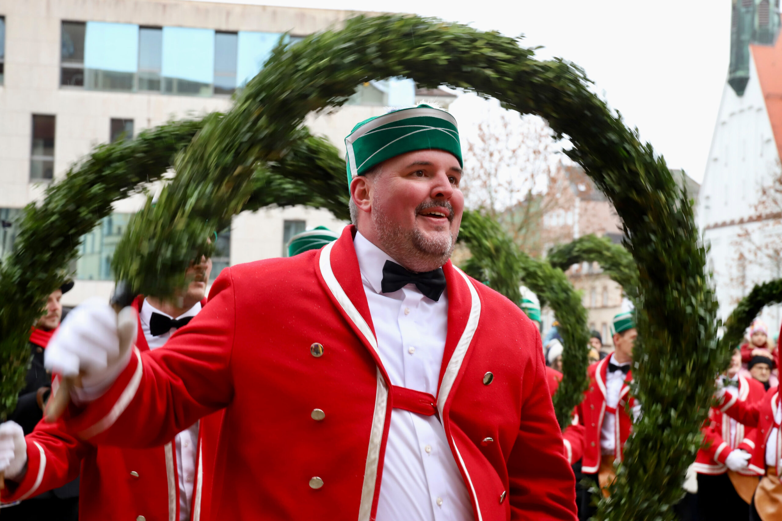 Mit dem Gottesdienst um 10 Uhr im Liebfrauenmünster begann am Vormittag ein besonderer Tag für die Stadt. Um 11 Uhr zogen die Ingolstädter Schäffler auf den Rathausplatz und eröffneten dort ihre Saison. Vor dicht gedrängtem Publikum erfüllten Musik, Reifen und Tracht die Innenstadt – ein seltenes Schauspiel, das Ingolstadt nur alle sieben Jahre erlebt.