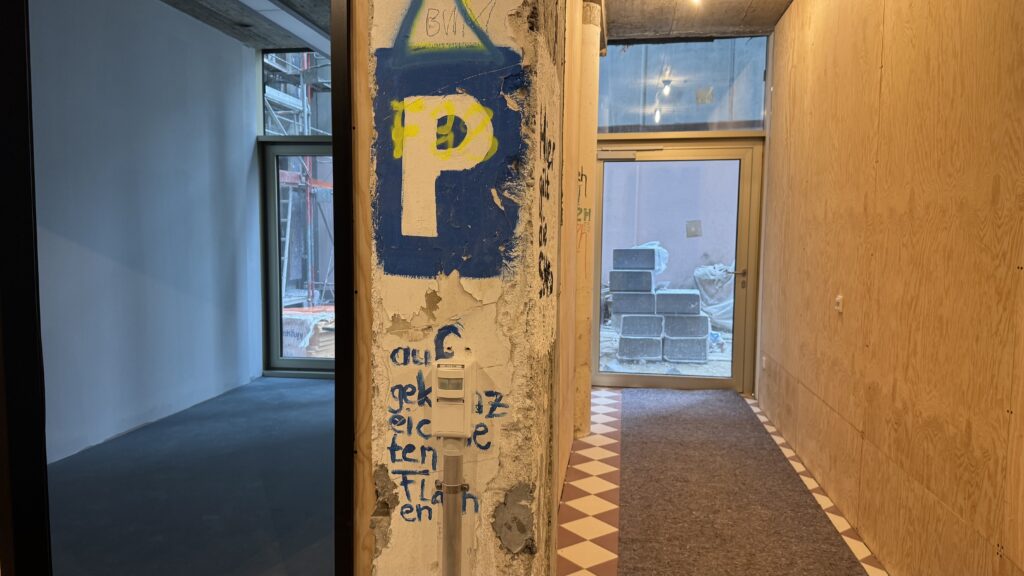 Auch praktische Fragen der Baustelle kamen zur Sprache: Für die Baustellenlogistik sei unter anderem ein Minibagger über den alten Aufzug nach oben gebracht worden. Beim Ausbau setze man auf LED-Technik, orientiere sich in der Anmutung aber an älteren Gestaltungsideen, etwa durch textilummantelte Leitungen und eine zurückhaltende Anordnung der Leuchten, erläuterte Rupp.