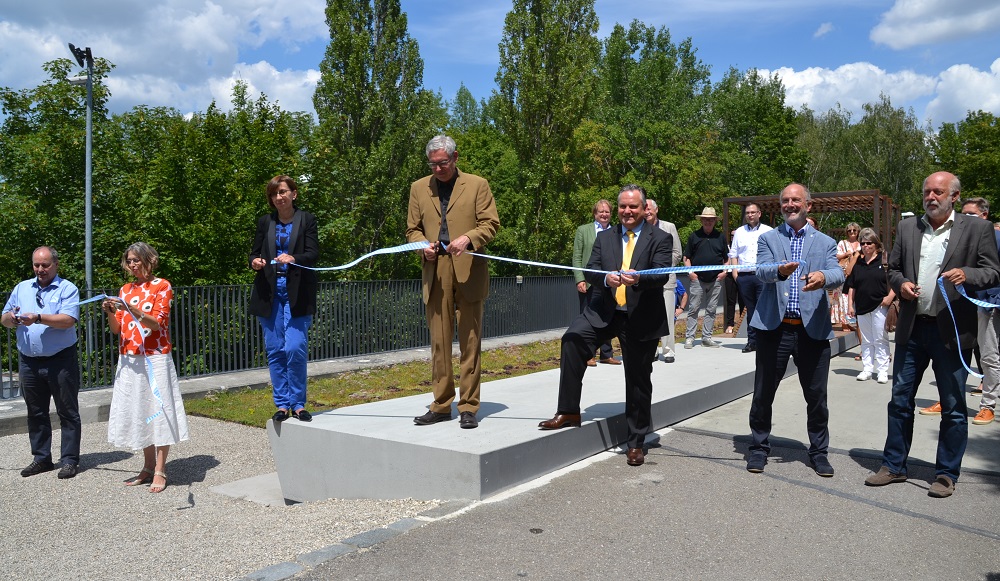 Oberbürgermeister Christian Scharpf, der die Gäste zur Highline-Eröffnung begrüßte, bezeichnete die Brücke als eine „Oase, die blendend gelungen ist“ und bedankte sich bei allen, die an diesem Projekt mit gewirkt haben – allen voran dem BZA Nordost. Er selbst war ja gerade erst bei der Baustellentour des Stadtrats über die Brücke geradelt, der er bislang zugegebenermaßen kaum Beachtung geschenkt hatte: „Das sind ganz neue Perpektiven,“ meinte der OB, der im Anschluss an die Wortbeiträge zusammen mit den Projekt-Beteiligten das obligatorische Eröffnungsband durch schnitt.