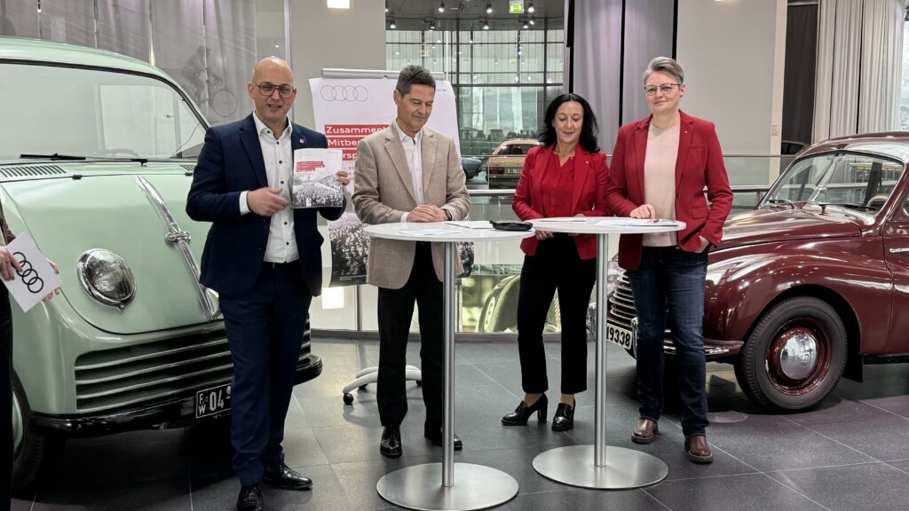Der Zusammenhalt gilt bei Audi als entscheidender Erfolgsfaktor – und genau diese Linie zieht die Jubiläumsbroschüre zu 75 Jahren Mitbestimmung konsequent durch. Sie spannt den Bogen von den frühen Nachkriegsjahren, in denen Materialknappheit, Wiederaufbau und Absatzkrisen den Alltag bestimmten, über wirtschaftliche Aufschwünge und Einbrüche der 1970er- und 1990er-Jahre bis hin zum Aufstieg zur Premiummarke vor der Jahrtausendwende. Ebenso zeichnet sie die technologischen Umbrüche, Konflikte und Krisen der Gegenwart nach – als Teil einer Standortgeschichte, in der Veränderung zur Konstante geworden ist.