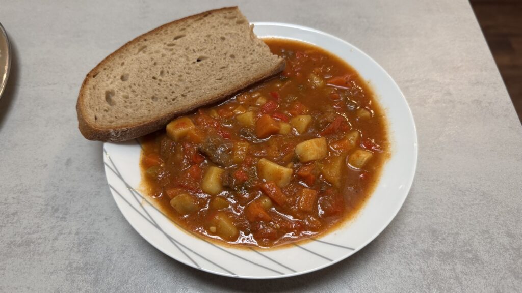 Acht Helferinnen und Helfer standen an diesem Vormittag in der Küche und kochten insgesamt rund 70 Liter Suppe. In den Töpfen köchelte eine Auswahl für unterschiedliche Geschmäcker: Nudel, Maultaschen, Kürbis, dazu vegane und vegetarische Varianten – und auch mit Fleisch. Dazu gab es Brot und Semmeln in großer Auswahl, außerdem süße Backwaren. Ein Teil davon kam von einer größeren Bäckerei aus dem Umkreis, die das Team regelmäßig unterstützt.