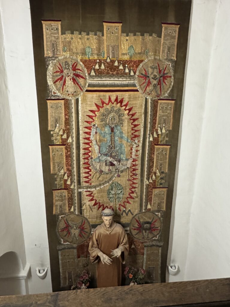 Bemerkenswert sind auch die Nadelmalereien – so zum Beispiel „Das Paradies“, das Sr. Pia nach dem Entwurf von Sr. Euphemia anfertigte.
