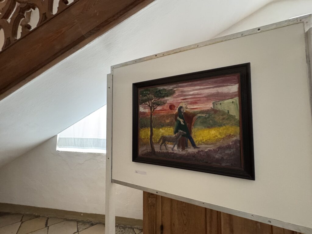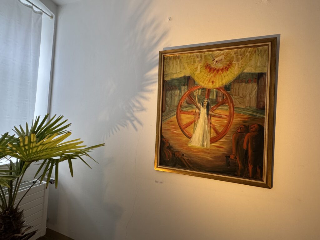 Neben dem Kunstunterricht widmete sich die Ordensfrau intensiv der Bibel und interpretierte das Gelesene in Ölgemälden auf Leinwand. Ihr künstlerisches Schaffen war jedoch weit umfassender. So gestaltete sie 1951 das Präfektorium der Schwestern und thematisierte die Wände rundum mit den Aufgaben des Klosters, ein geistliches Leben zu führen. Zwei Frauen treten dabei einen Weg durch alle Stationen an: eine Nonne und eine weitere Frau, die die Weisheit verkörpert. So werden die menschliche Seele und die göttliche Weisheit zu einer Einheit – getragen von einer inneren Heiterkeit, die sich in Musizieren, Spiel und Tanz manifestiert. Die Künstlerin nannte diesen Raum den „Wonnegarten des Heiligen Geistes“ – so heißt er bis heute.