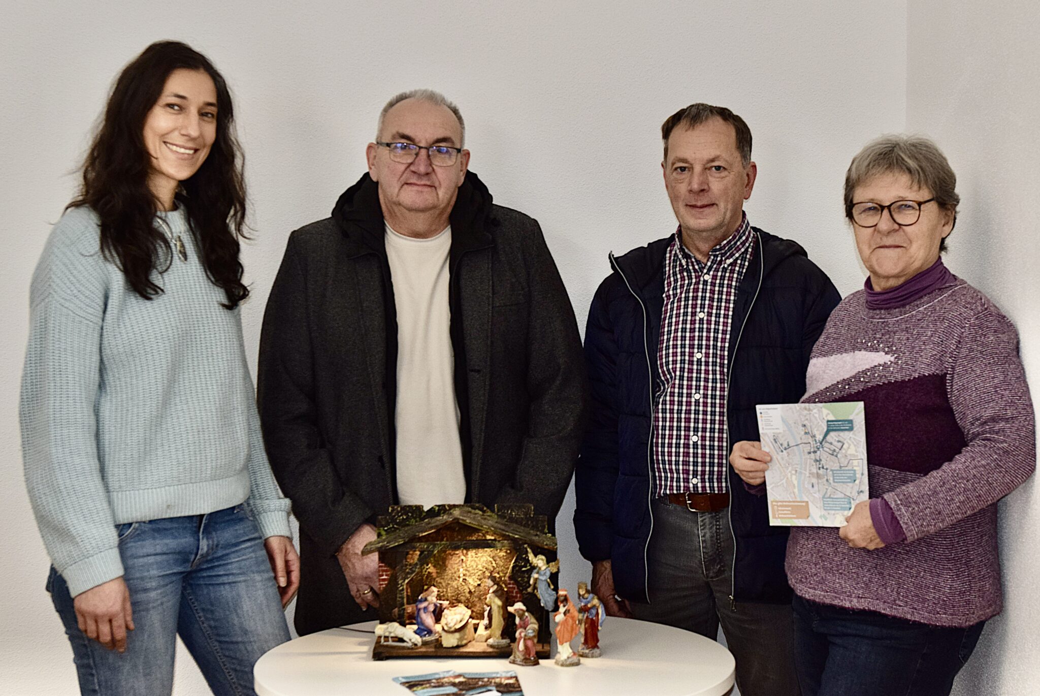 Als der Anruf aus dem Rathaus kam, war die Freude groß: Nicht nur Krippenquiz-Gewinnerin Julia Schneider freute sich – im Hintergrund jubelten Paula (10), Emma (8) und Lorenz (4) ebenfalls lautstark. Gemeinsam mit ihrer Familie hatten sie den Eichstätter Krippenweg besucht, alle Stationen erkundet und das dazugehörige Quiz der Stadt und der Krippenfreunde Eichstätt mit Begeisterung gelöst. Nun durften sie die Gewinnerkrippe 2025 entgegennehmen.