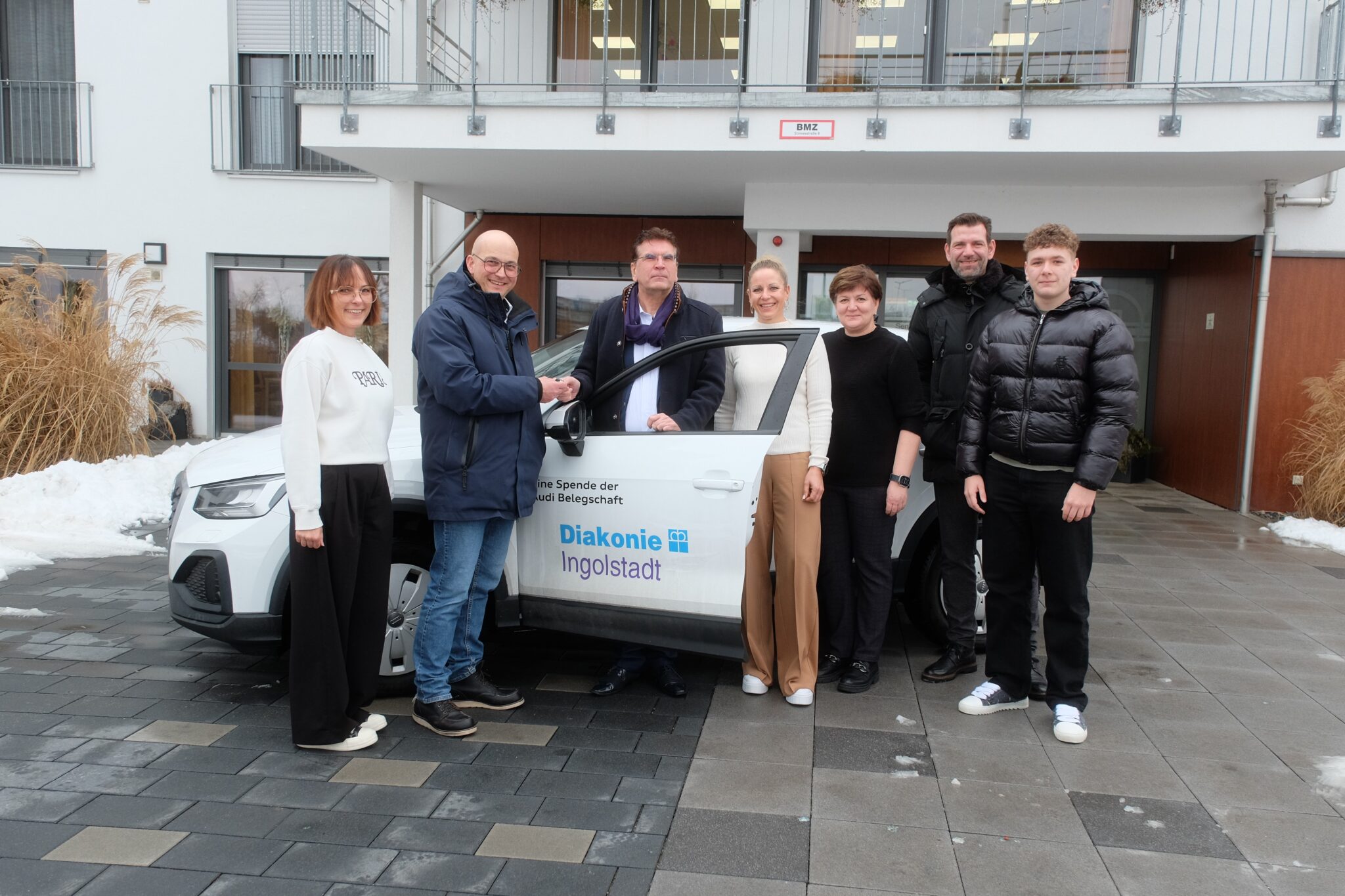 Ein Audi Q2 aus der Audi Weihnachtsspende wurde am 26. Januar 2026 vom Audi Betriebsrat an das Diakonische Werk Ingolstadt e. V. übergeben. Das Fahrzeug wird künftig im Bereich der häuslichen Pflege eingesetzt und unterstützt die Mitarbeitenden dabei, Menschen im Alltag zuverlässig zu begleiten und zu versorgen.